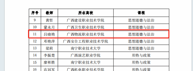 根据《自治区教育厅关于公布的 2024 年广西高校思想政治理论课教师教学基本功比赛暨“精彩一课”评选活动获奖名单的通知》,beat365官网马克思主义学院吕晓艳、甘昭燕两位老师均获二等奖!此次获奖实现了beat365官网在此项比赛上的突破!