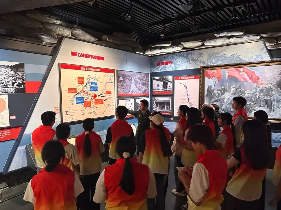 在湘江战役脚山铺阻击战纪念碑林,师生们深切缅怀革命先烈,为英雄烈士敬献花篮;在红军长征湘江战役纪念馆,师生们深入了解党的历史和革命先烈的英勇事迹,铭记“一草一木一忠魂、一山一石一丰碑”的悲壮史诗,深刻领会湘江战役精神。