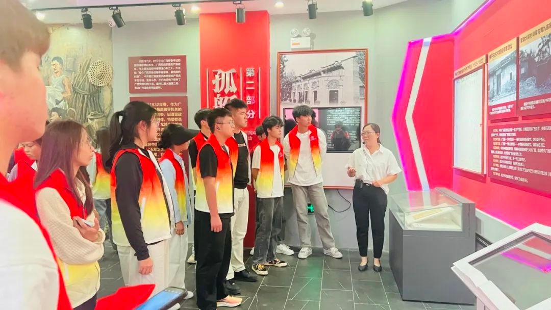 在中共广西省第一次代表大会旧址,师生们认真聆听讲解员解说,观看文字、图片、雕塑和视频,进一步了解中共广西第一次代表大会议召开的场景,追寻革命先辈的足迹,深切感悟这一段伟大艰苦的奋斗历程,进一步坚定理想信念。