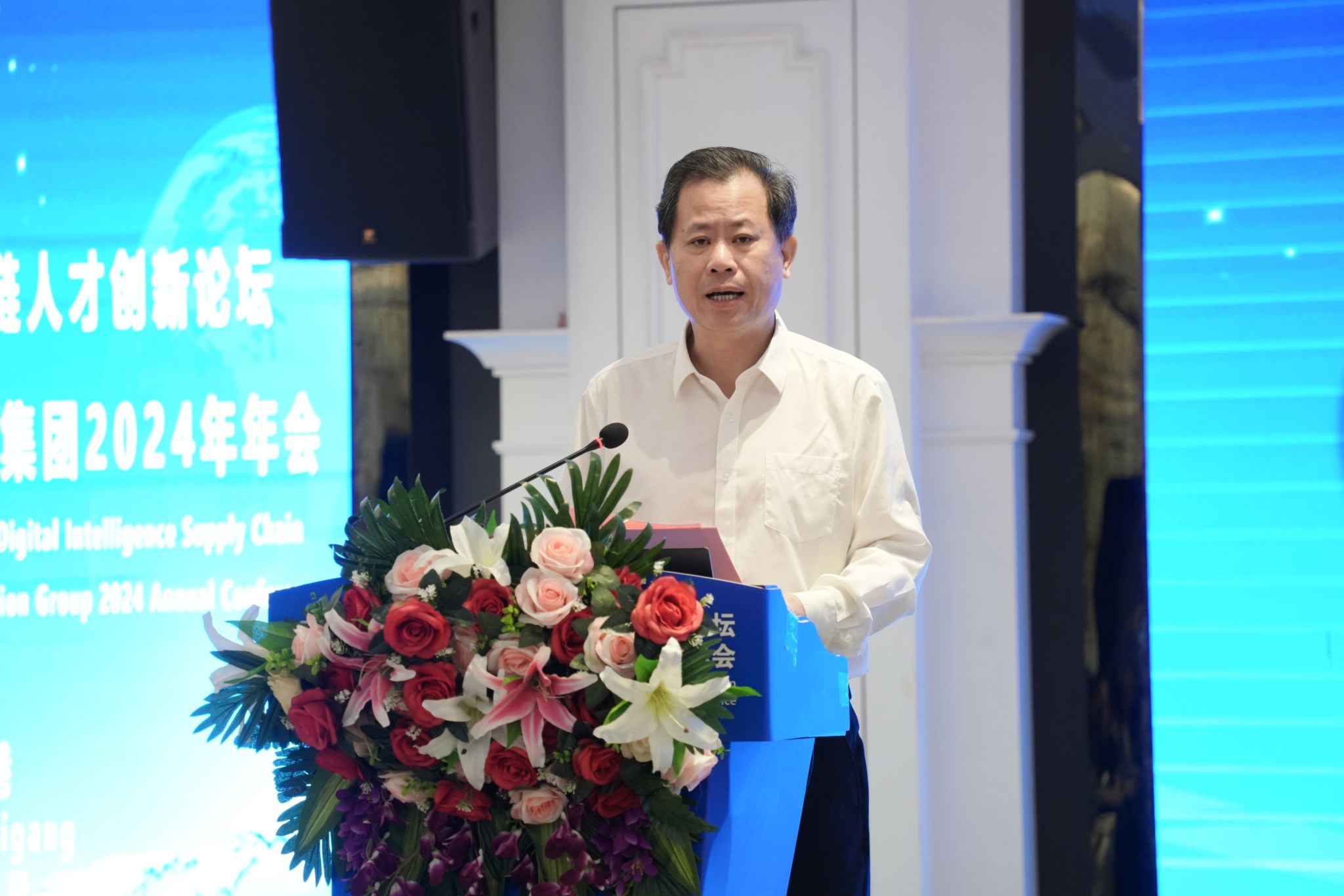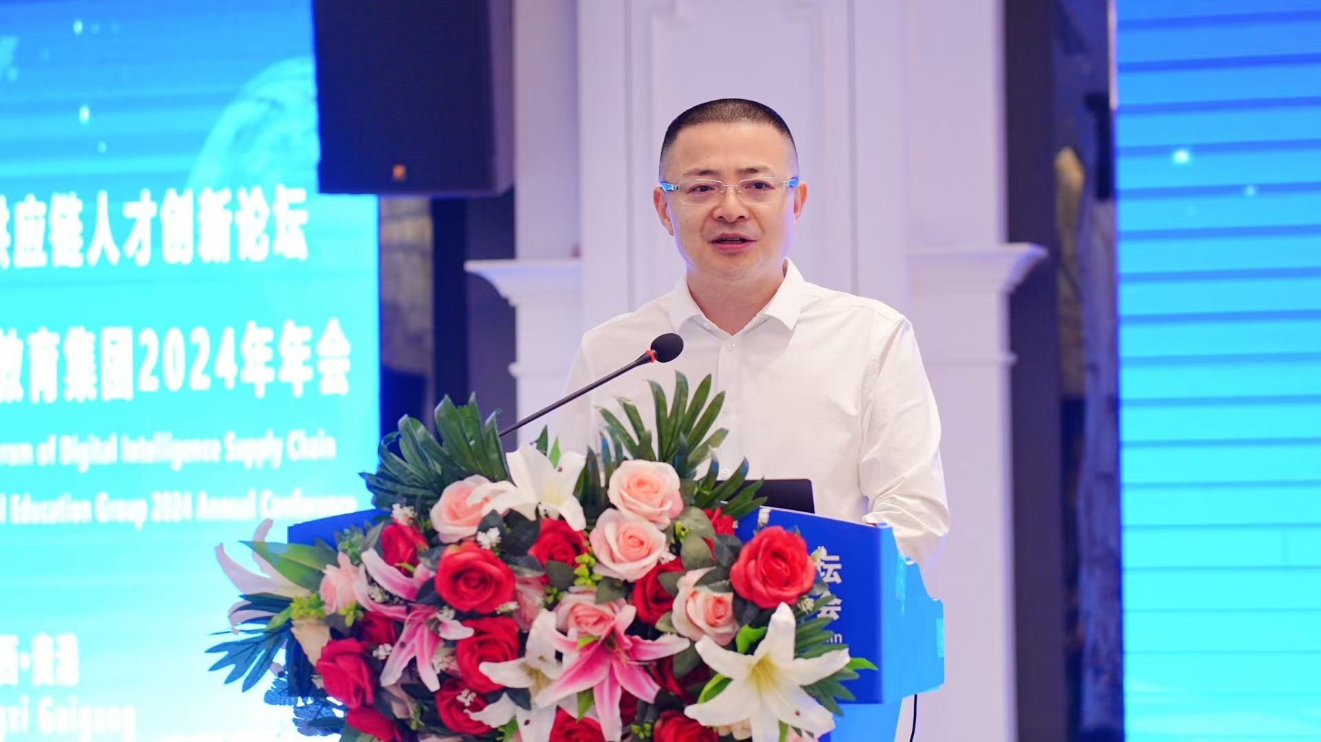 周春涌讲到,贵港市是一座充满生机的新兴内河港口城市,广西供应链职业教育集团在供应链人才培养、产教融合、校企合作等方面与贵港经济社会发展高度契合。他有三点展望,一是希望各位专家学者和企业界的朋友能够深入探讨数智供应链领域的前沿技术和创新应用,共同推动供应链管理的智能化升级。二是希望广西供应链职业教育集团能进一步深化校企合作,创新人才培养模式,培养更多符合数智时代需求的高素质技能人才。三是希望贵港市能够借此次会议之机,加强与东盟国家及其他地区的交流合作,共同探索区域供应链合作的新路径。