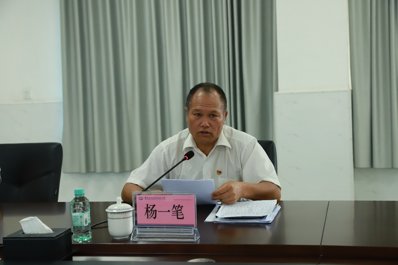 党委副书记、工会主席杨一笔主持,党政办公室、党委组织部(人事处)、党委宣传部、各党支部书记、工会、校团委等部门负责人