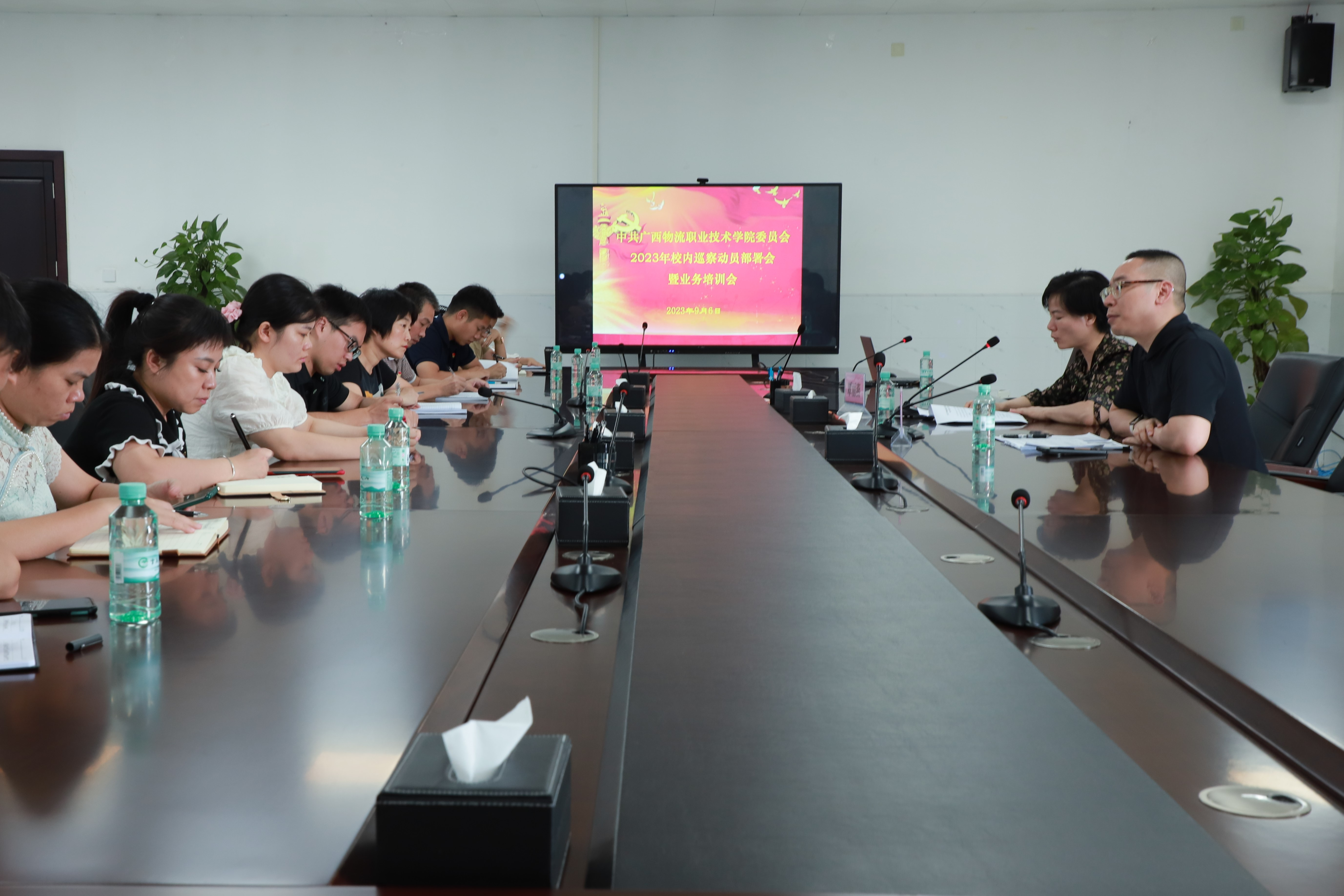 2023年9月6日,学院在独秀南楼401会议室召开2023年校内巡察工作动员部署暨业务培训会,会议由学院党委委员、纪委书记覃丽燕主持并作动员讲话,集团公司党委巡察办副主任吴臣到会作巡察专题培训辅导。 学院党委巡察组全体成员参加会议。