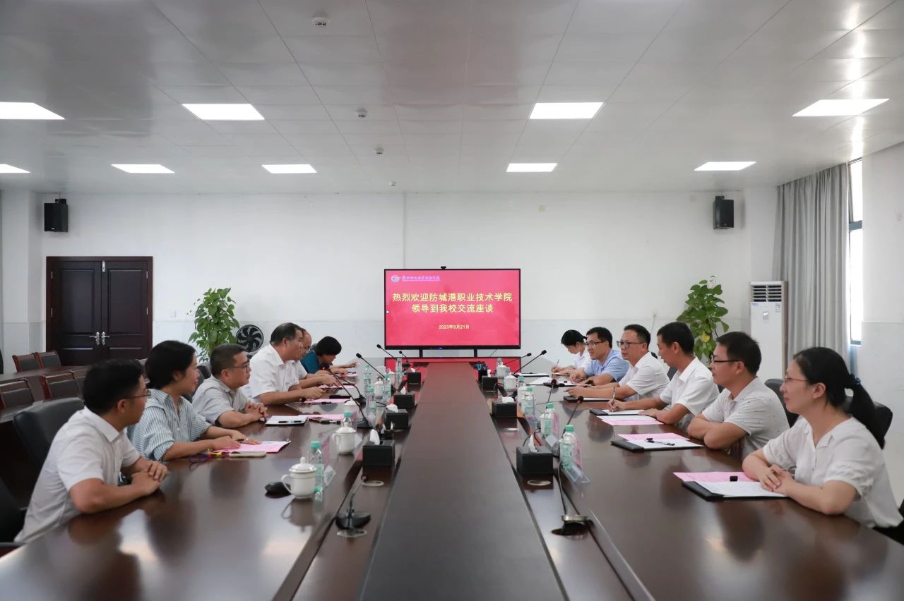 9月21日下午,防城港职业技术学院党委副书记、校长欧阳群东一行6人到beat365官网考察调研,举行工作座谈会。学院党委副书记、院长朱海强,副院长陈赋光陪同调研。