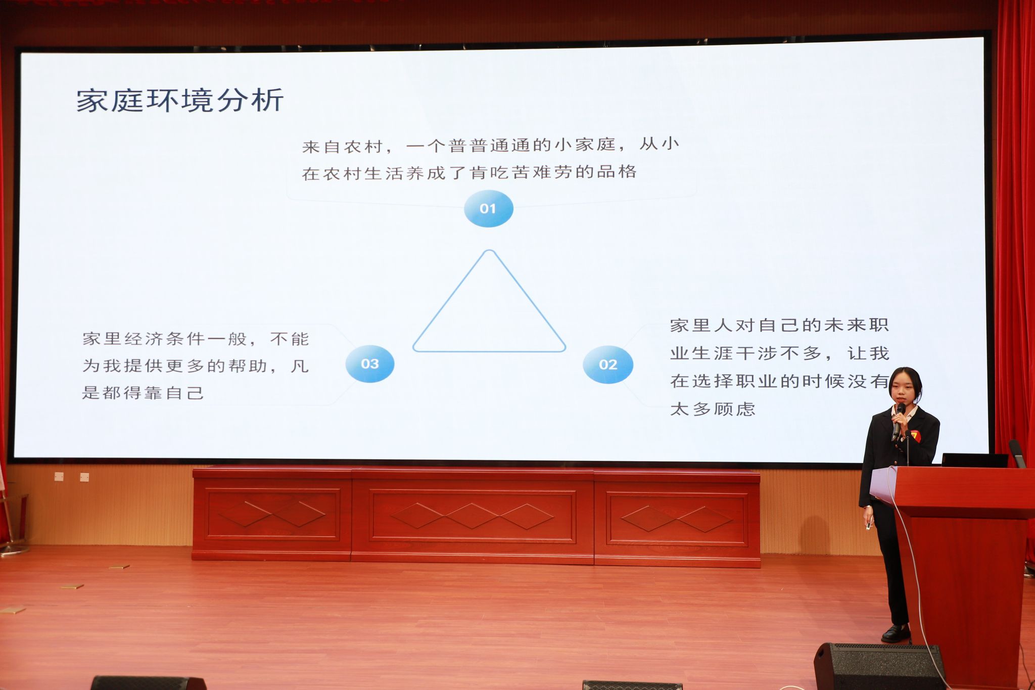 决赛现场,选手们结合职业兴趣、求职目标进行陈述,生动地展示了自己的实践经历、与岗位的匹配度与个人发展潜力。专家评委根据职业规划的科学性、实践经历的适配性、社会发展需要等多个角度,对每位选手进行打分与点评,并给予对其职业发展的具体建议。