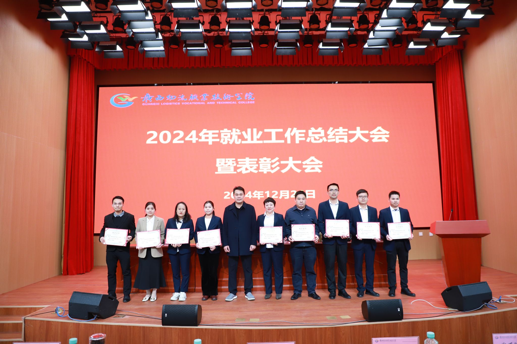 韦光茂为荣获就业先进个人的教师颁奖 梁杰总结2024年招生就业工作,对2025年招生就业工作进行部署,并代表学校与五个二级学院签订2025届毕业生就业工作责任状。