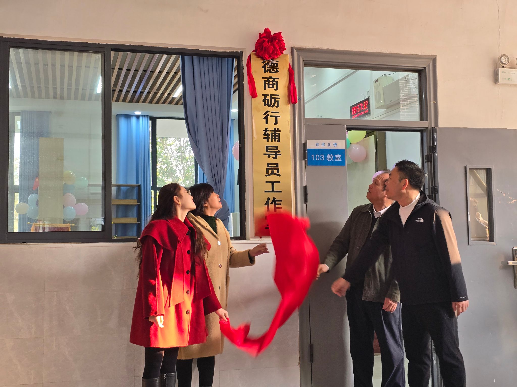 2024年12月31日上午,beat365官网“物联心桥”“德商砺行”两间辅导员工作室揭牌仪式顺利举行。学校党委副书记、工会主席杨一笔出席揭牌仪式。