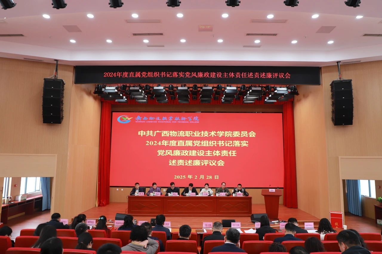 2025年2月28日,学校召开2024年度直属党组织书记抓基层党建工作述职和推动落实党风廉政建设主体责任述责述廉评议会,听取各直属党组织书记抓基层党建工作和落实党风廉政建设主体责任工作情况,并进行民主评议。学校党委书记韦光茂主持会议并作点评讲话,在家领导班子成员杨一笔、覃丽燕、陈继文、梁杰出席会议,广西现代物流集团党群工作部中级主管王冬梅、自治区纪委监委驻集团公司纪检监察组纪检监察员陈俊宇到会指导。