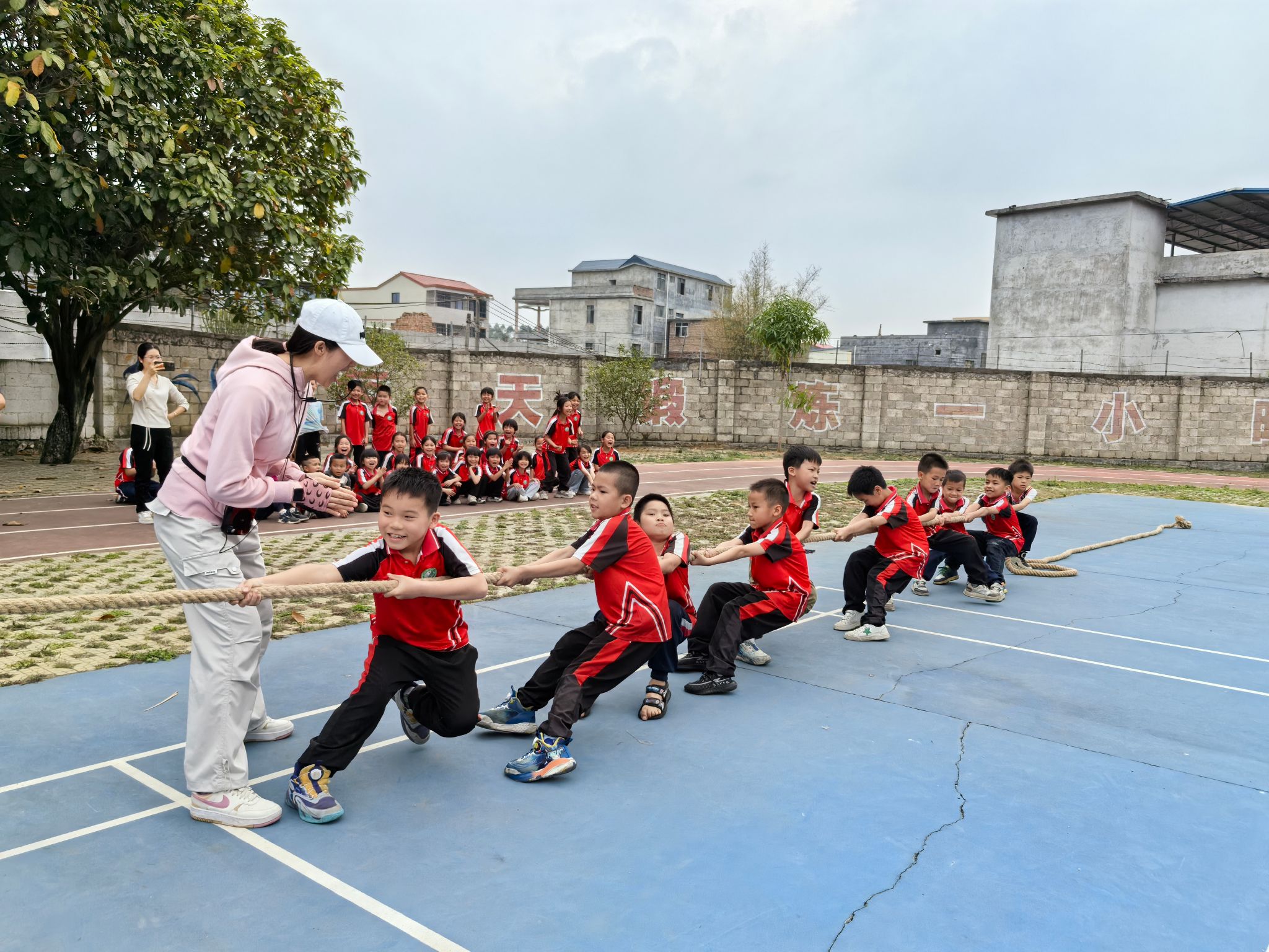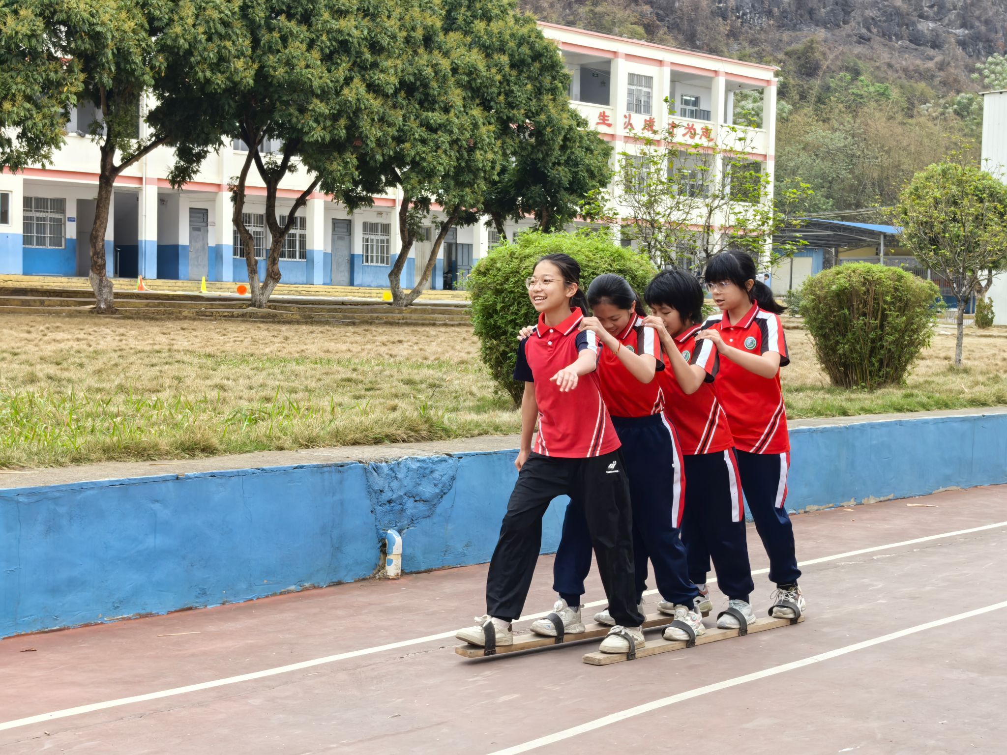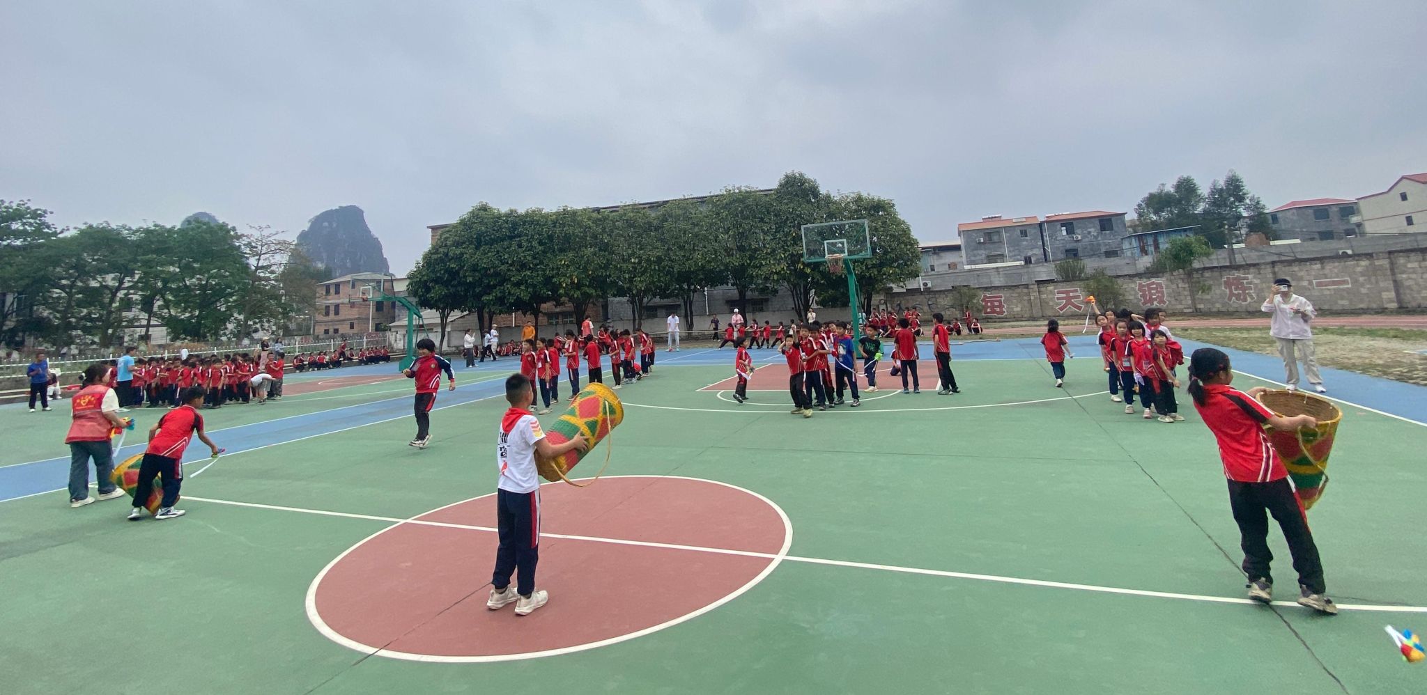 民族体育体验课程上,老师们带领孩子们体验了民族毽球、背篓绣球、趣味拔河、板鞋竞速等丰富多彩的民族体育项目。