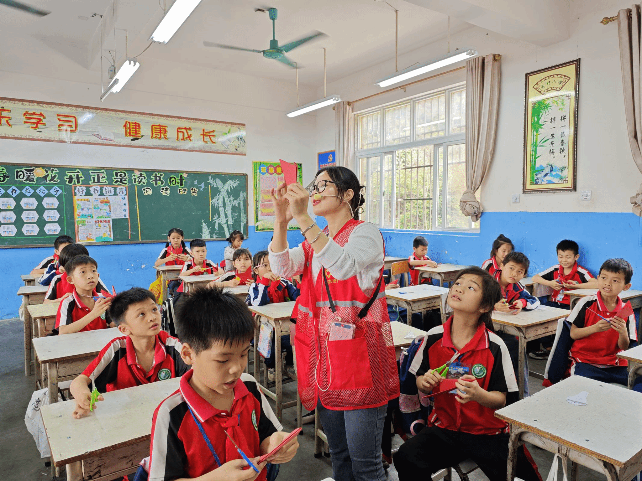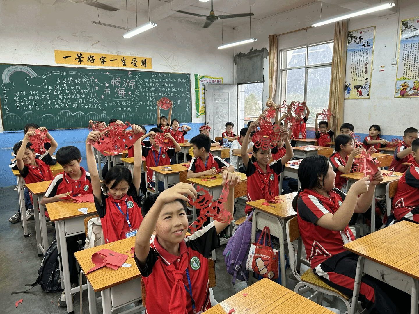 非遗手工剪纸课程上,老师们耐心地向孩子们讲解剪纸基本技巧。一双双小手在红纸上灵动地舞动,一幅幅栩栩如生的剪纸作品便呈现在眼前。