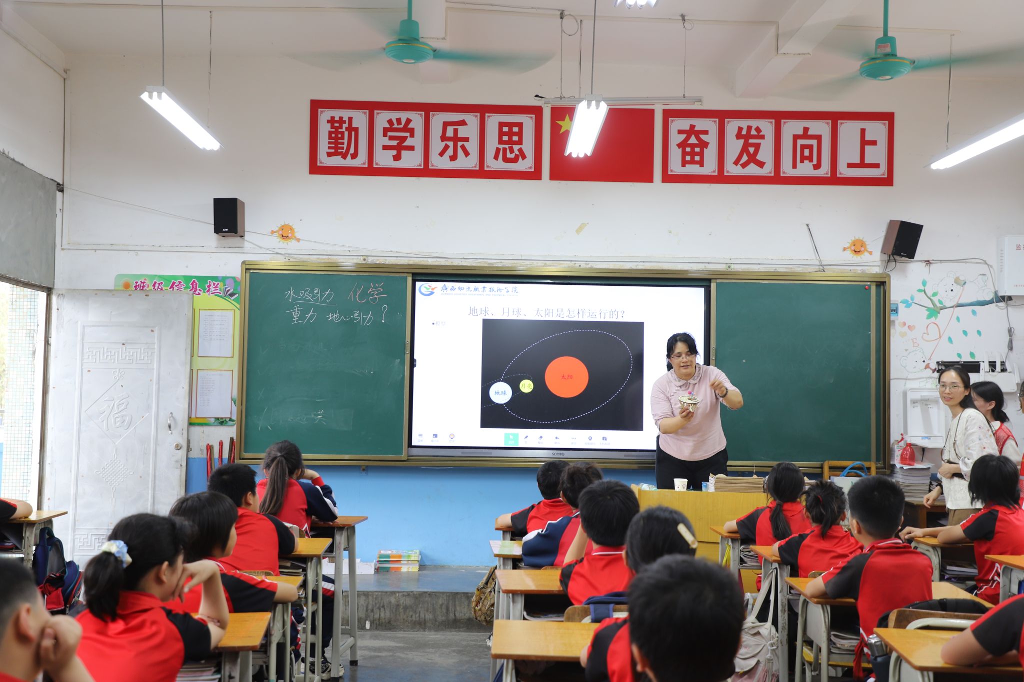 与此同时,高年级的教室则化身为探索科学的殿堂。科学家精神宣讲环节,主讲老师绘声绘色讲述黄大年、魏乃文事迹,点燃孩子们理想之火,传递爱国钻研精神,还巧妙融入磁铁原理等趣味实验,课堂秒变探索乐园。孩子们眼睛放光,抢着上台,沉浸在科学魅力中。