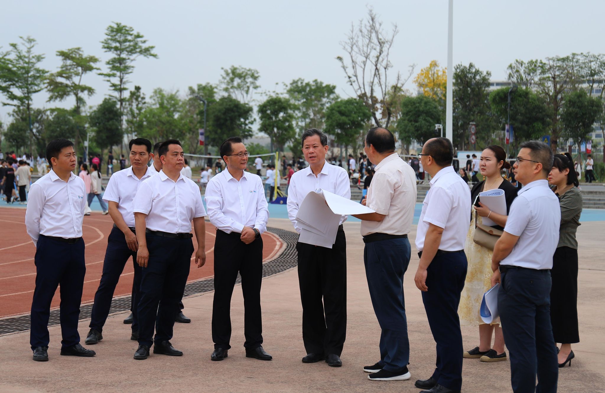 4月18日,广西现代物流集团党委书记、董事长覃黎魁一行到物流学院调研广西2025年职业教育活动周筹备工作情况。集团公司党委副书记、副董事长、总经理冯小金,副总经理潘雪红、罗圆陪同调研。
