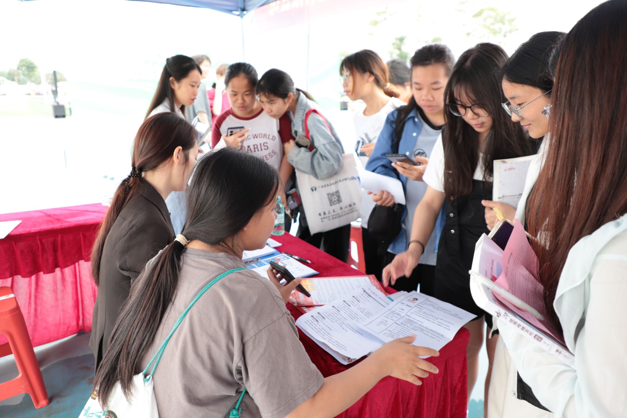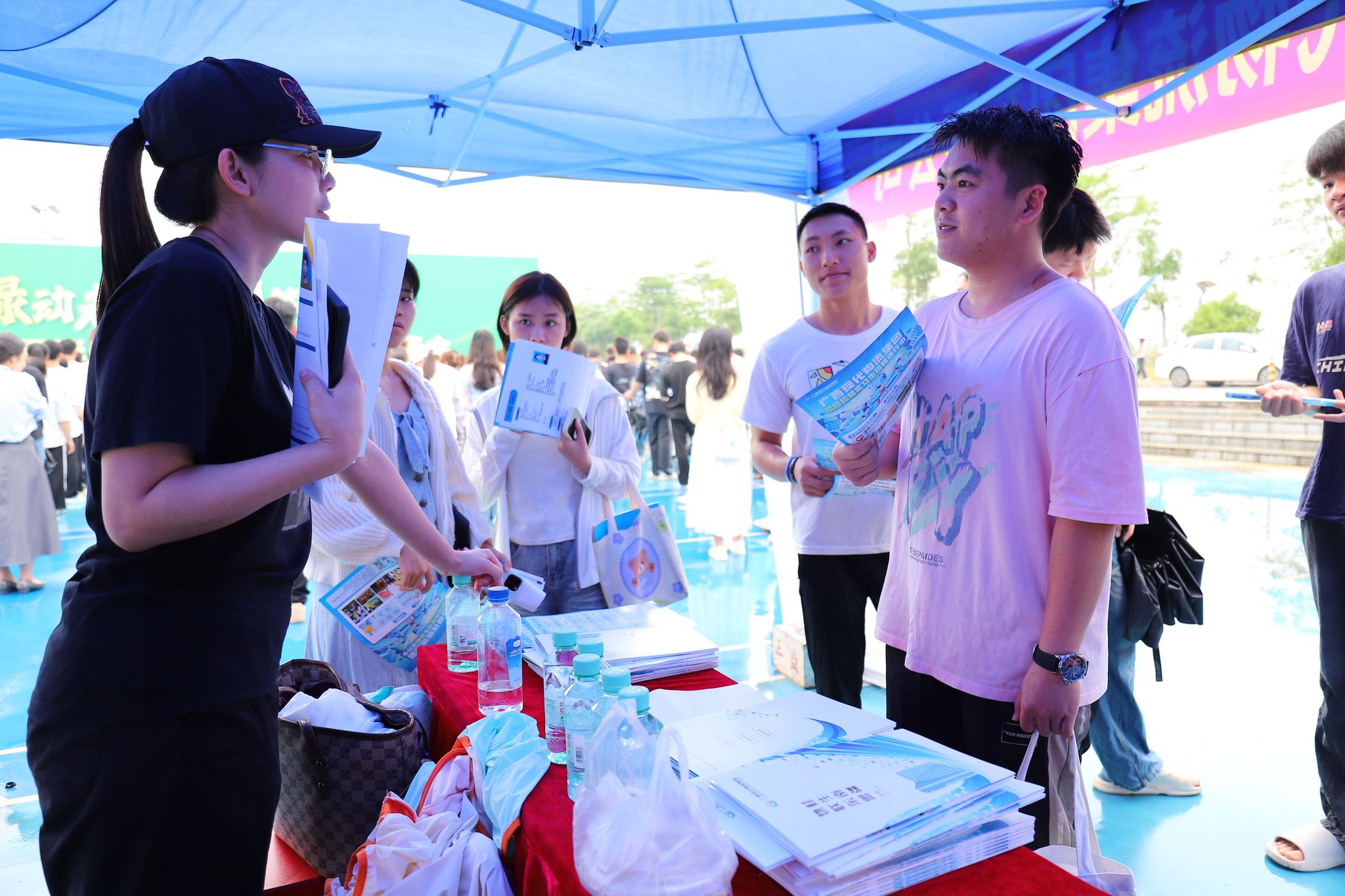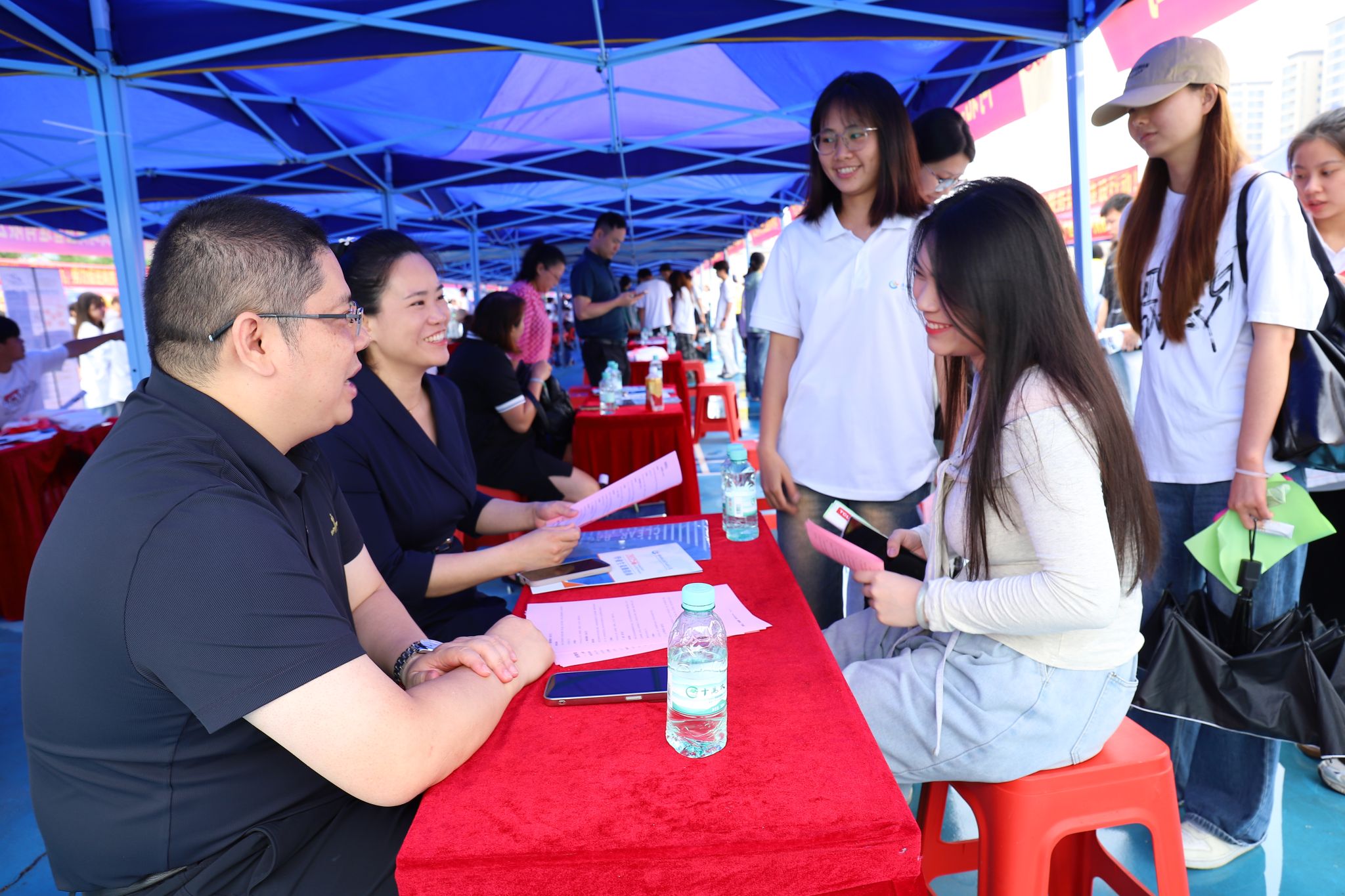 双选会现场气氛热烈,人头攒动。各企业展位前排起长队,企业代表化身“绿色导师”,通过视频展示、案例讲解等方式,向毕业生介绍岗位前景;学生们手持简历,积极与企业沟通技能要求及职业规划。