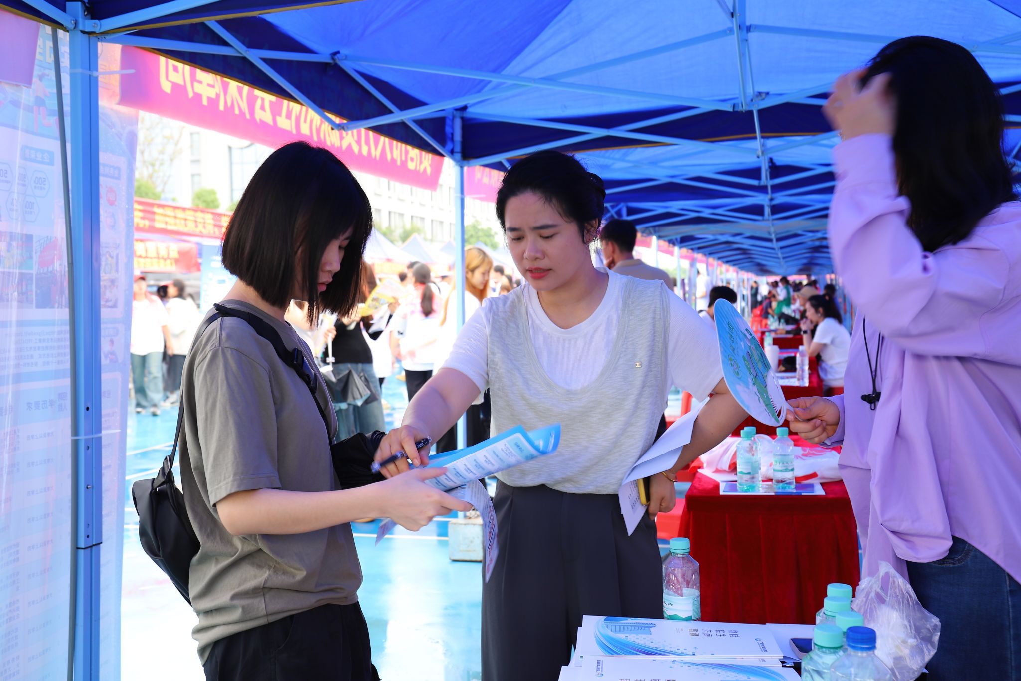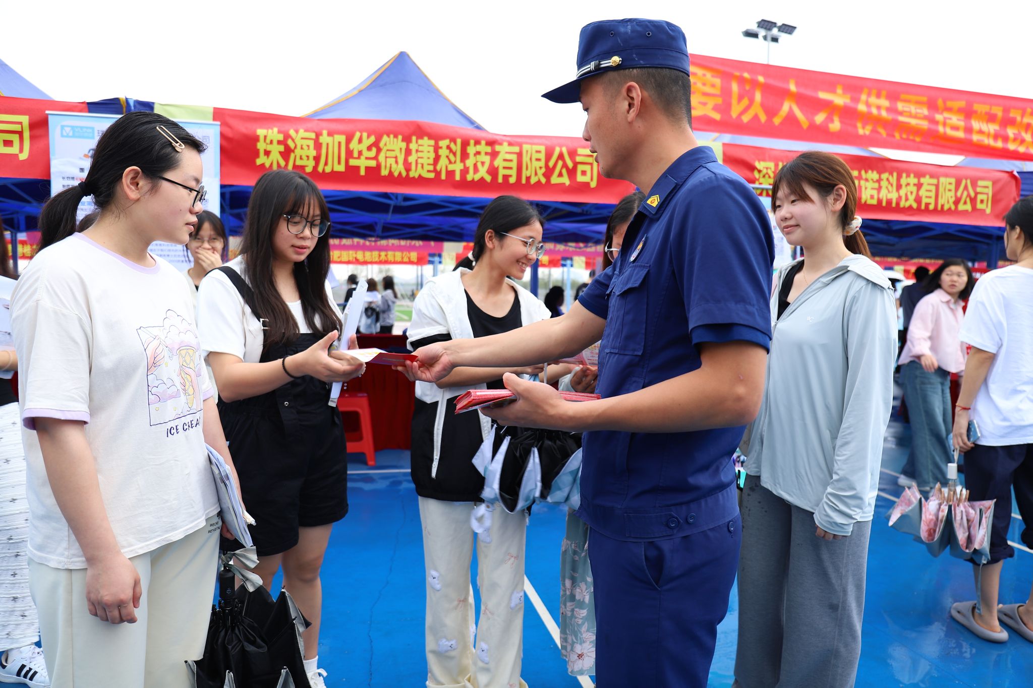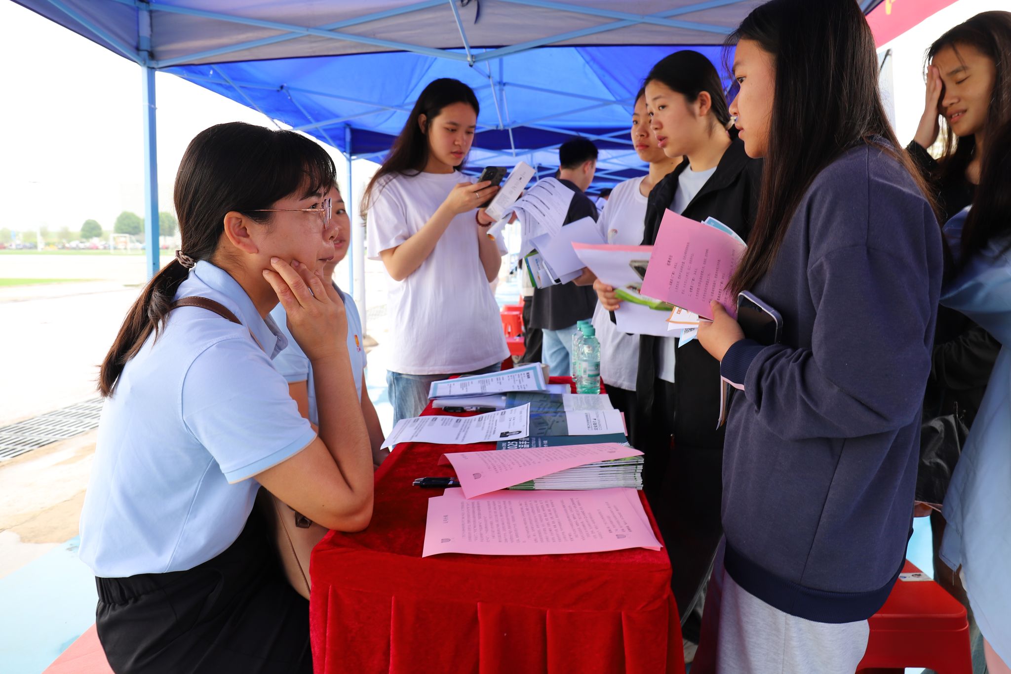 双选会现场气氛热烈,人头攒动。各企业展位前排起长队,企业代表化身“绿色导师”,通过视频展示、案例讲解等方式,向毕业生介绍岗位前景;学生们手持简历,积极与企业沟通技能要求及职业规划。