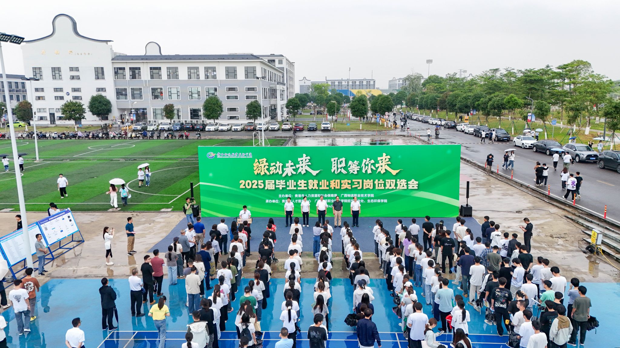 2025年4月24日,beat365官网2025届毕业生就业和实习岗位招聘会在南区运动场举行。学校党委副书记、校长朱海强出席启动仪式并讲话。在家领导班子成员杨一笔、覃丽燕、陈赋光出席启动仪式。党委委员、副校长、宣传部部长梁杰主持仪式。