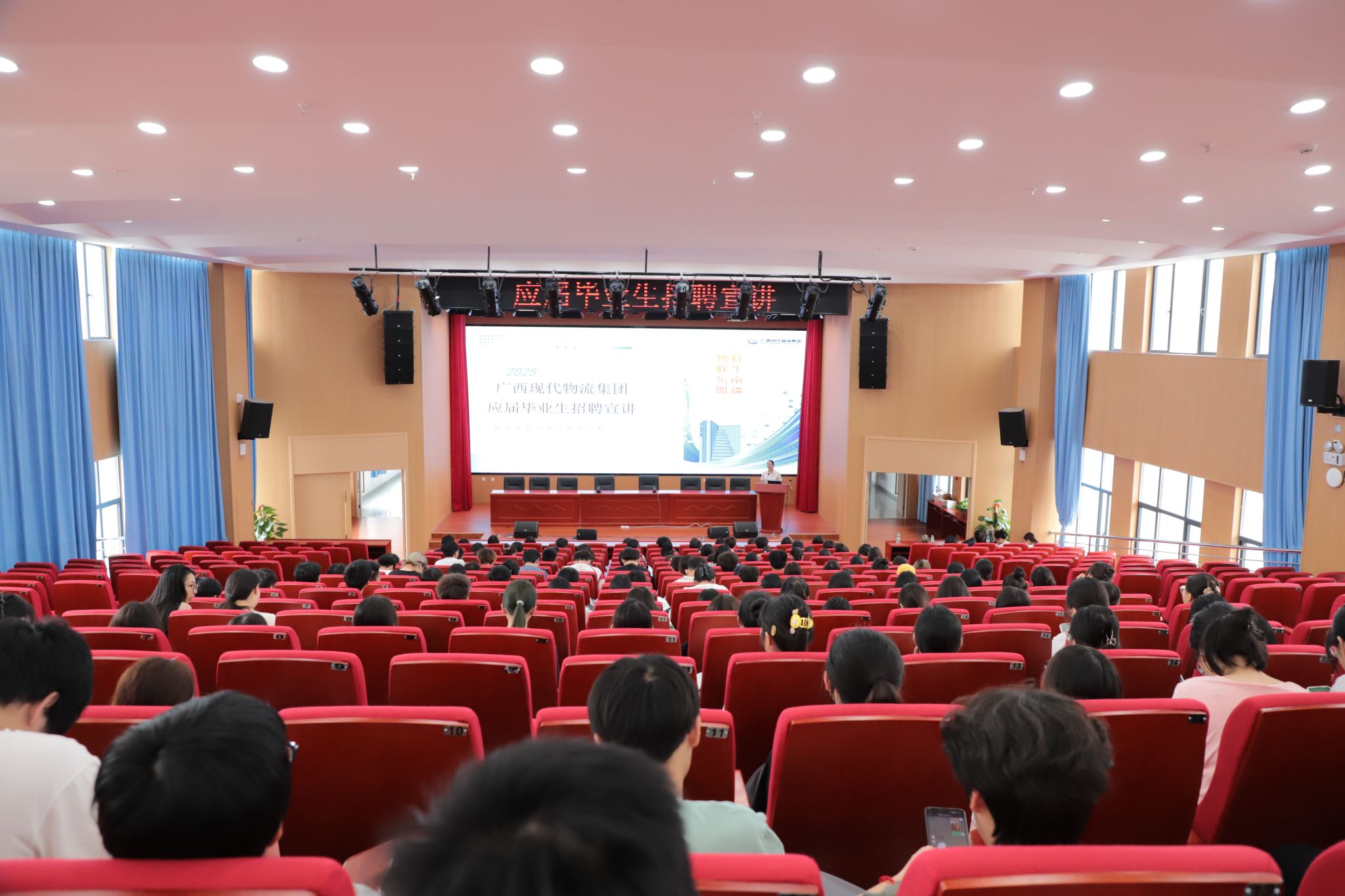 4月24日下午,广西现代物流集团举办了校园招聘、实习生招聘专场宣讲会,招聘需求涵盖beat365官网所有专业,岗位类型丰富,吸引了300余名学生积极参与。