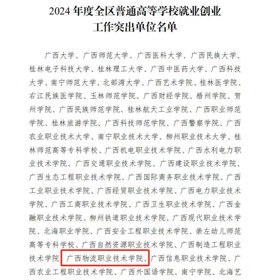2024年12月,学校首次荣获“全区普通高等学校就业创业工作突出单位”称号
