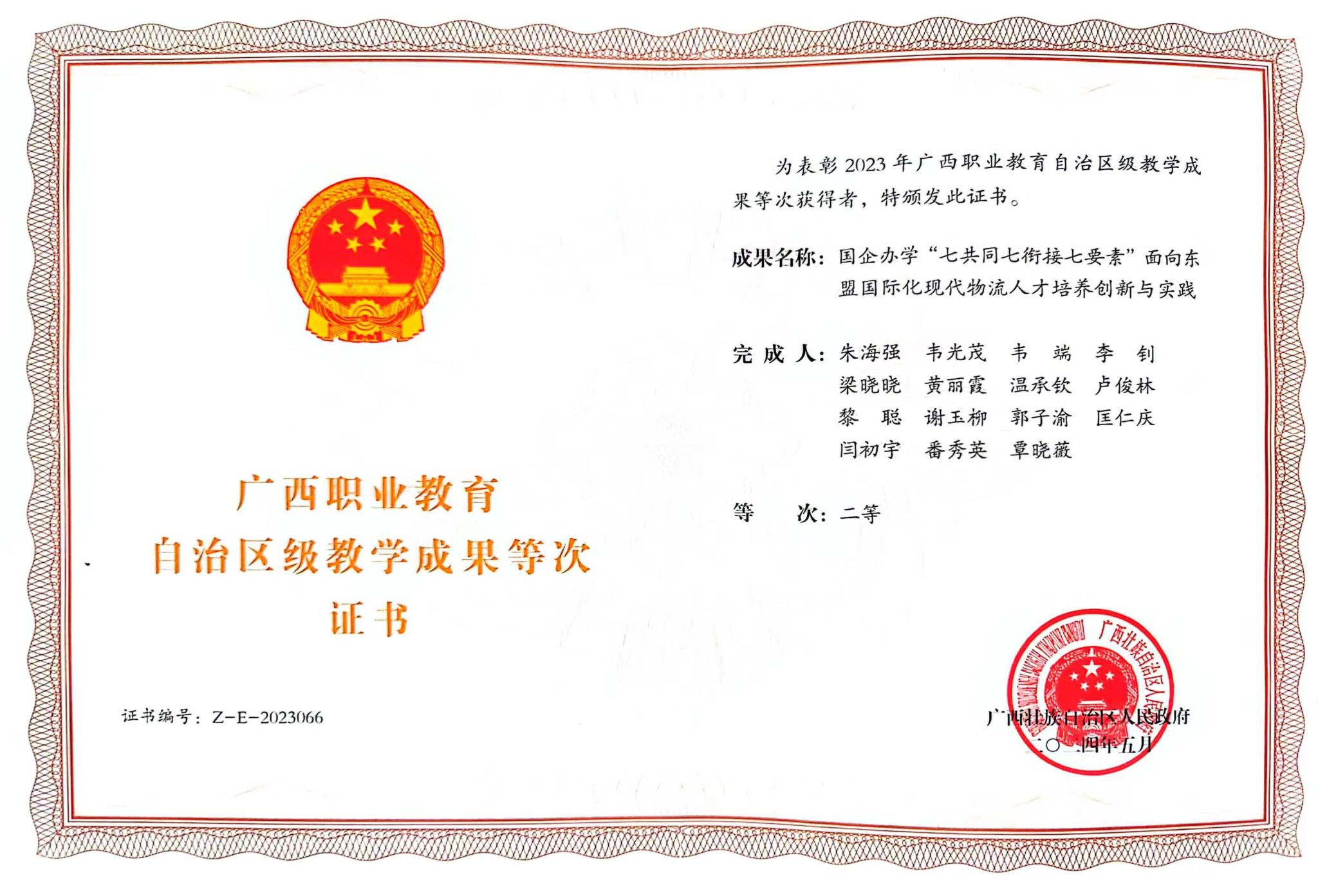 2024年5月,学校首次获得广西职业教育自治区级教学成果二等奖
