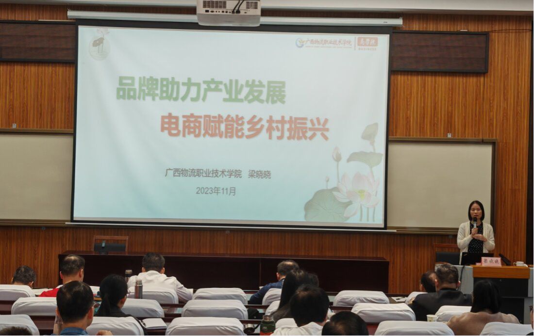 学校充分发挥高校社会服务功能,既要“引进来”,还要“走出去”。2022年,自治区国资国企乡村振兴研学中心在学校揭牌成立。学校主动对接贵港市运动休闲服饰、农产品等产业链,开展直播带货等活动,聚焦培养知农、爱农、兴农的新时代人才,成功申请“桂物春”等9个商标品牌,开展乡村振兴方面培训400多人次,一场职业教育与地方产业发展共生共荣的画卷就此展开。