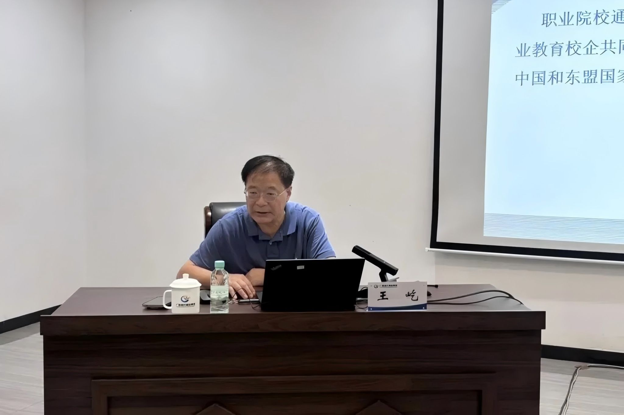 活动特邀广西职业教育发展研究中心常务副主任、南宁师范大学二级教授、博士生导师王屹进行专题培训。王屹教授围绕构建“中国—东盟职业教育校企共同体”,共建中国—东盟国际产教融合机制等内容,从国家职业教育政策导向出发,结合广西产业发展需求,深入浅出地阐述了“产教融合、校企合作”的创新路径,为学校队伍建设、培养国际化技术技能人才提供了宝贵建议。