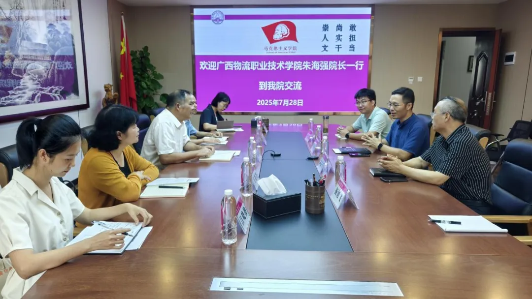 7月28日,beat365官网党委副书记、校长朱海强率队赴广西师范大学马克思主义学院开展交流访问。广西师范大学马克思主义学院党委书记罗富元、常务副院长孟宪平、副院长李东明及学院行政助理杨旭飞参与交流。