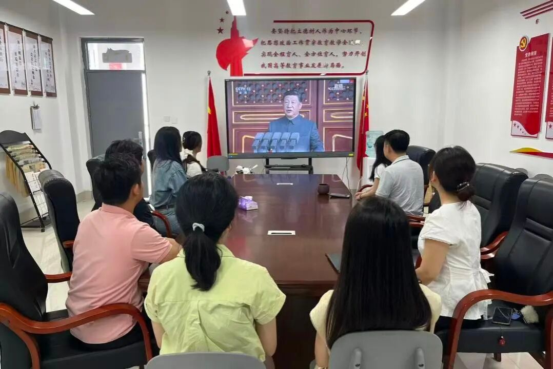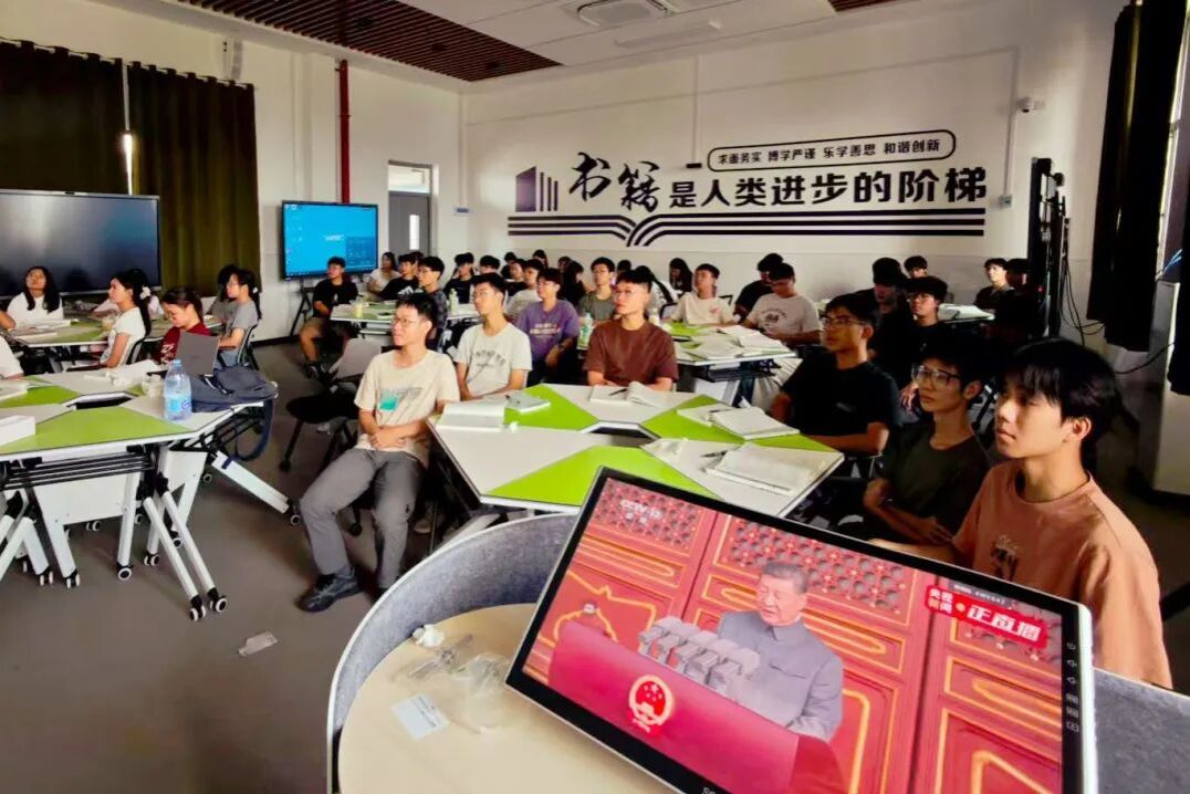 教职工分别在办公室、会议室等场所通过网络平台进行了集中观看;各班级学生在辅导员、班主任的组织下,于各自教室通过多媒体设备同步收看直播。全校上下联动,形成了共同纪念、共同学习的强大声势。