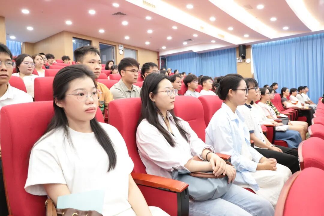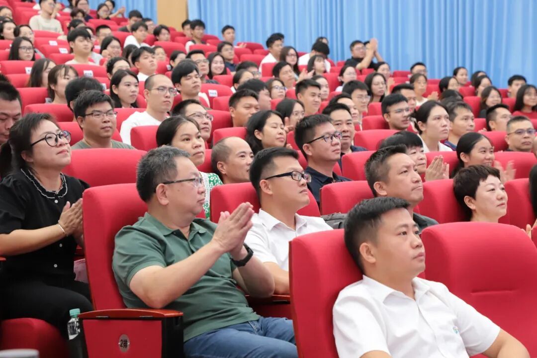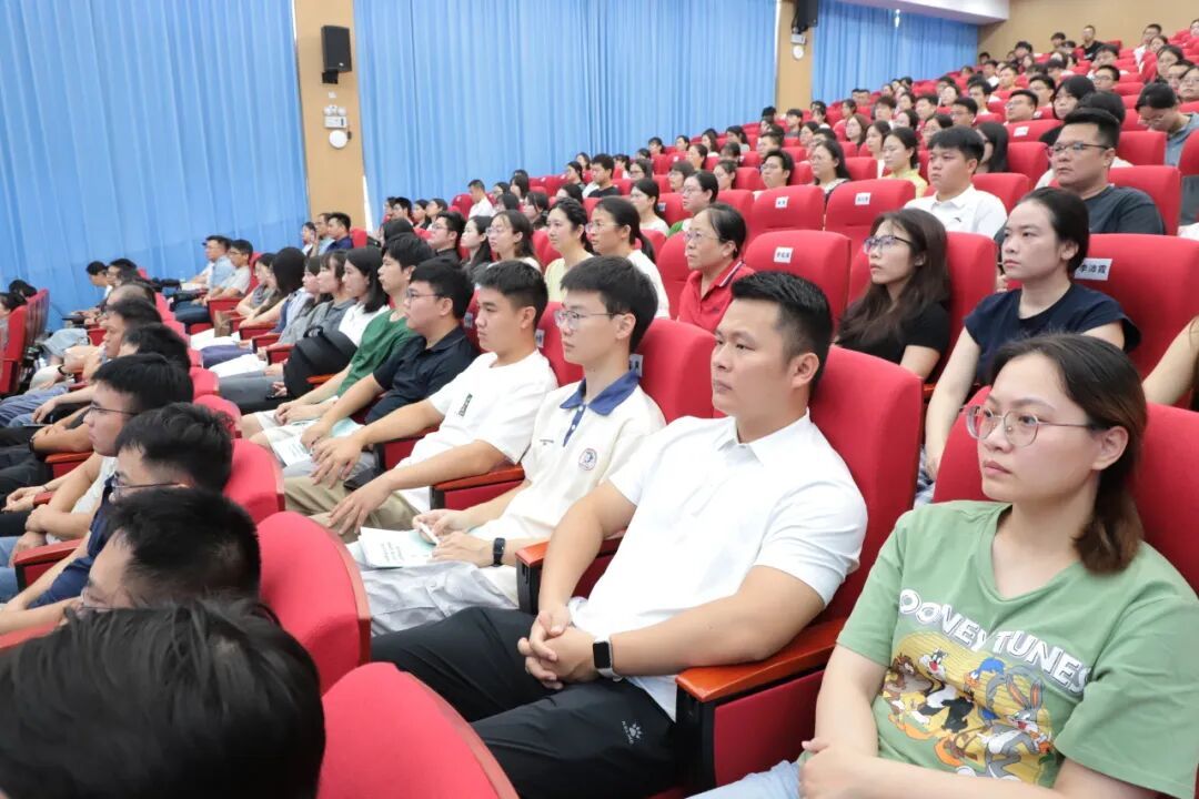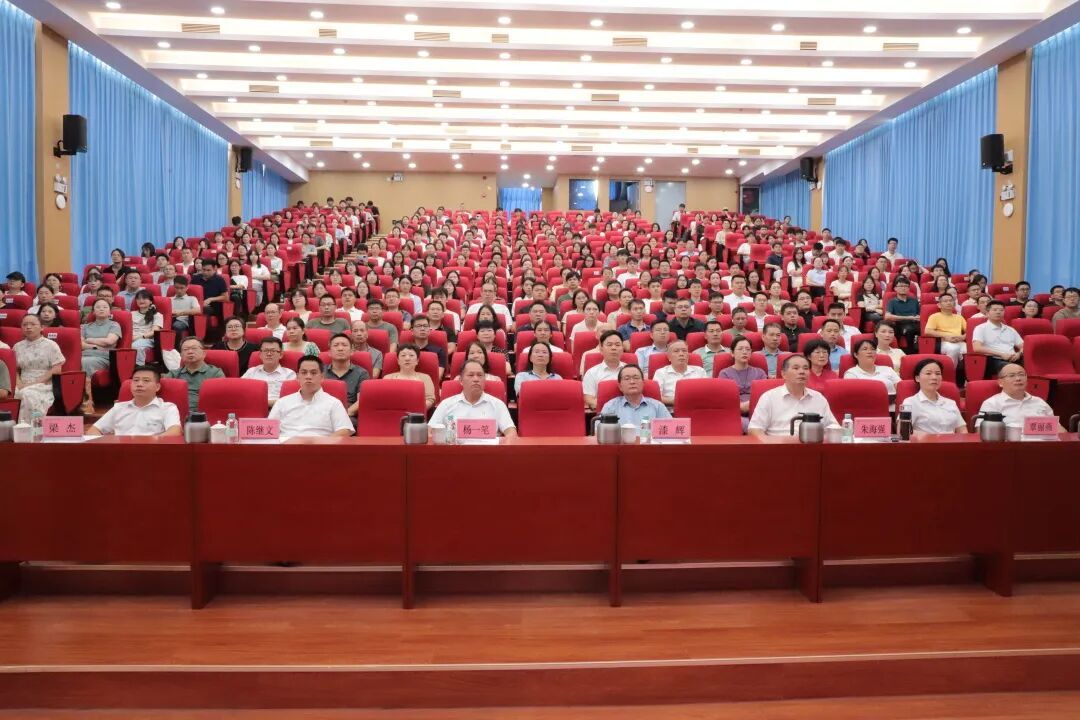学校领导班子成员漆辉、朱海强、杨一笔、覃丽燕、陈继文、陈赋光、梁杰及全体中层干部、师生代表400余人在318报告厅主会场集体收听收看。