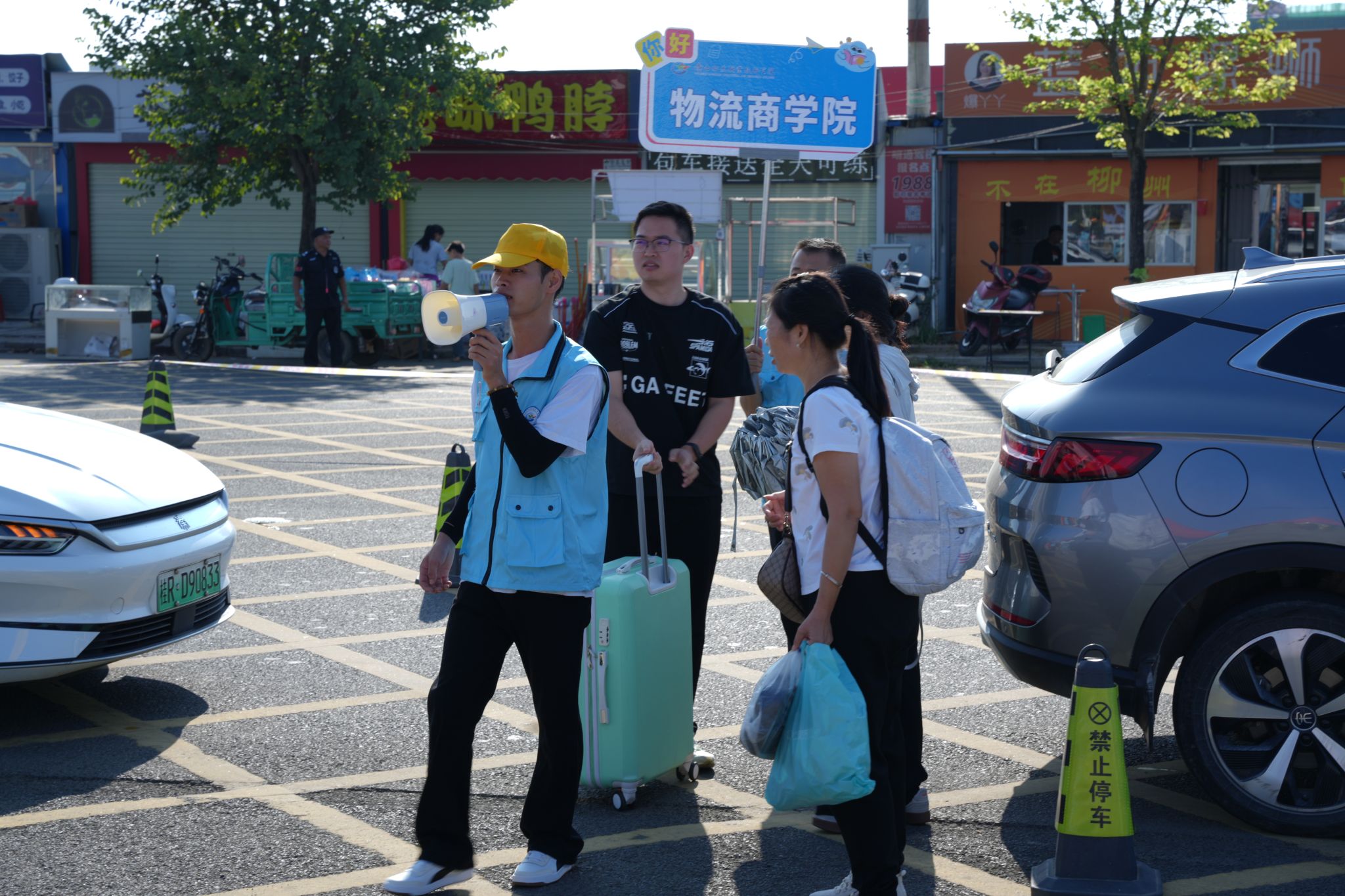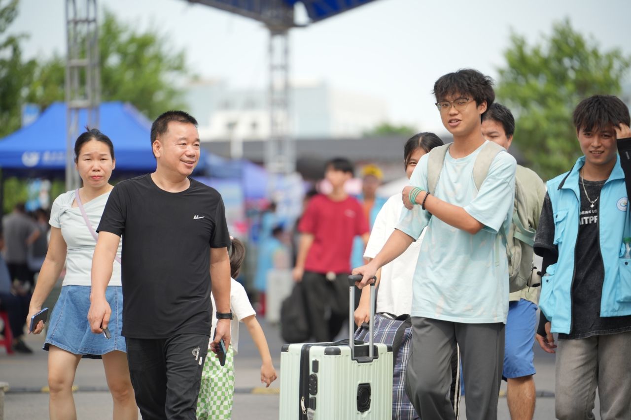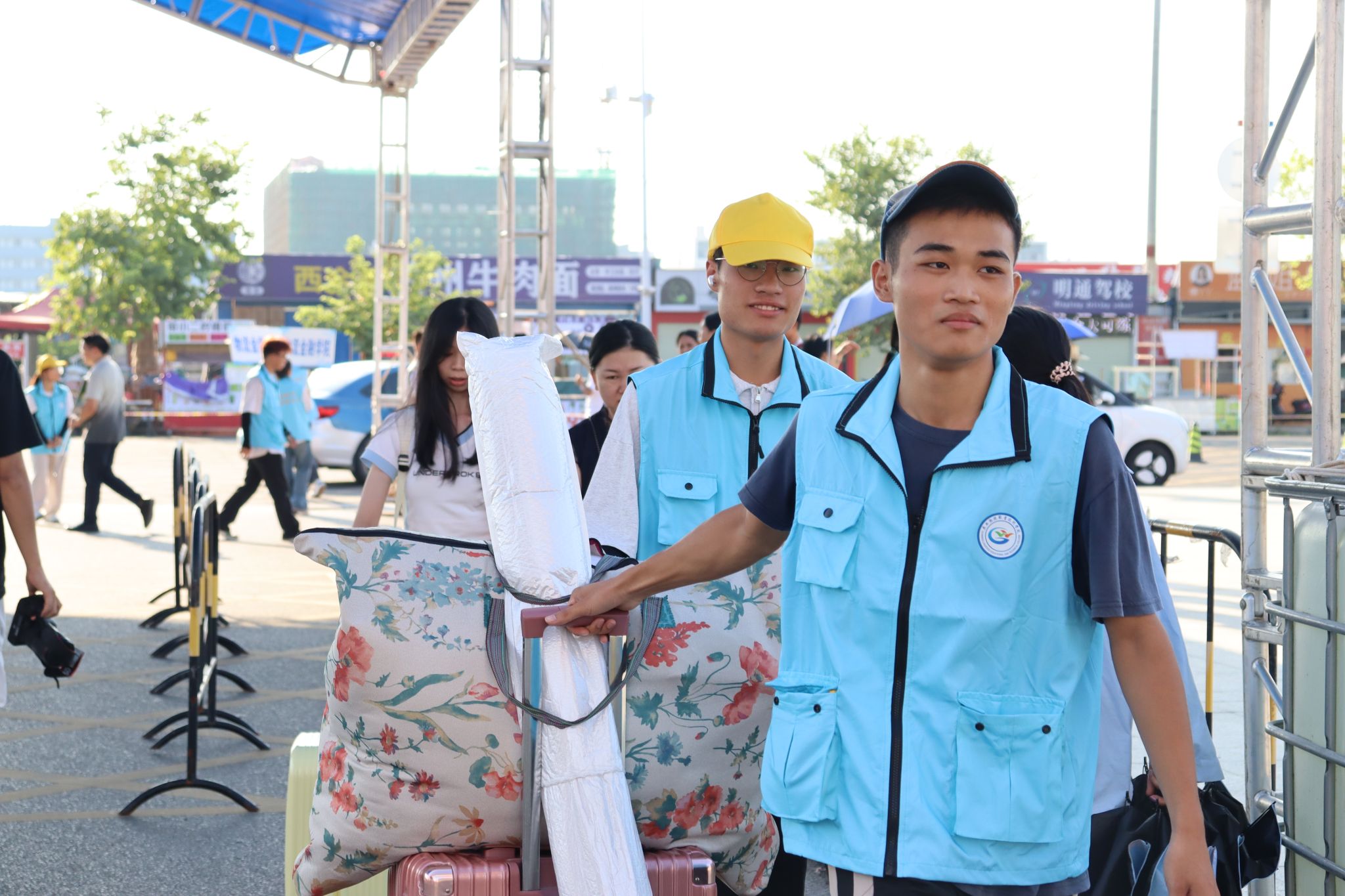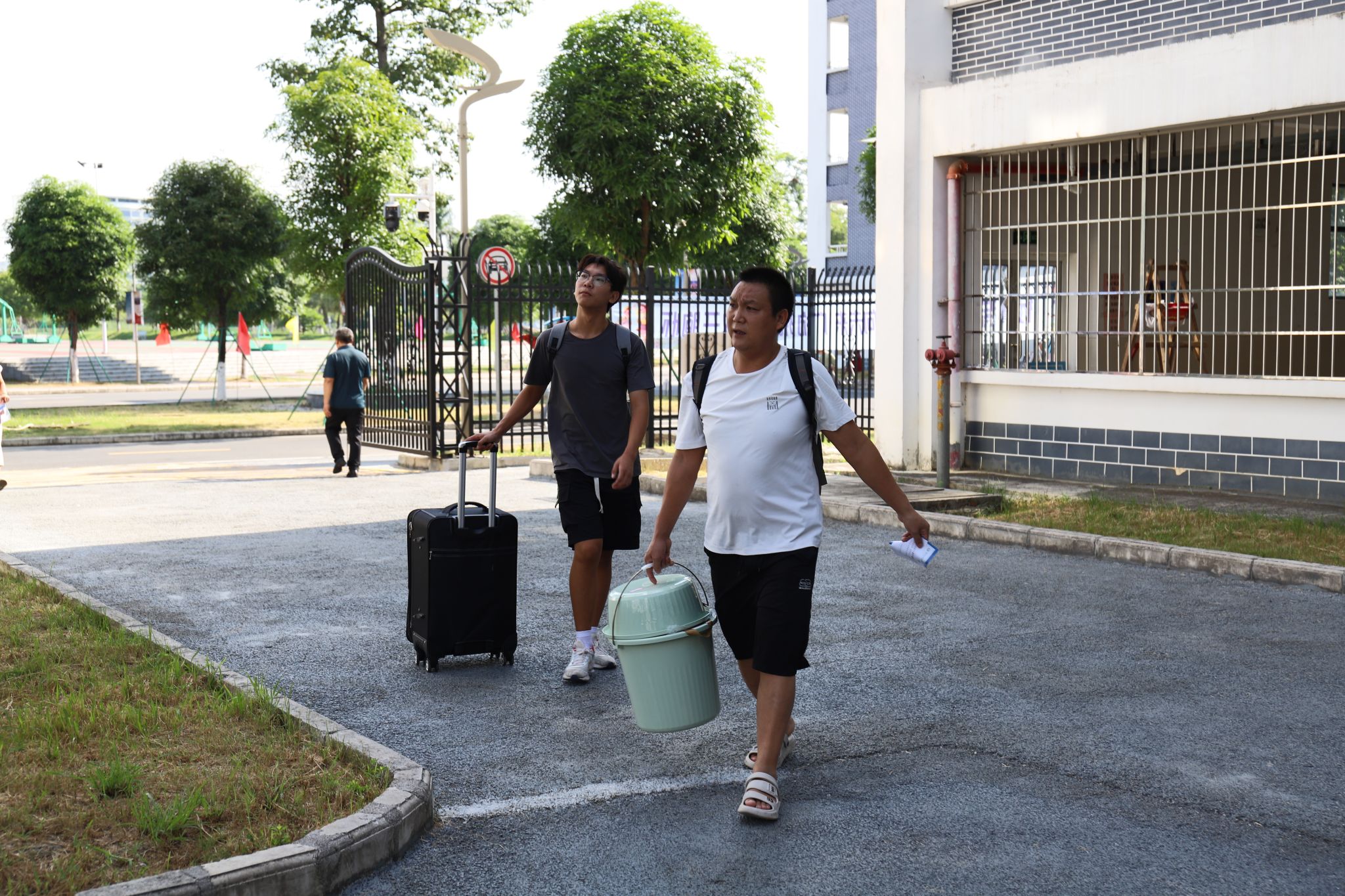 校园里随处可见扛着行李的家长