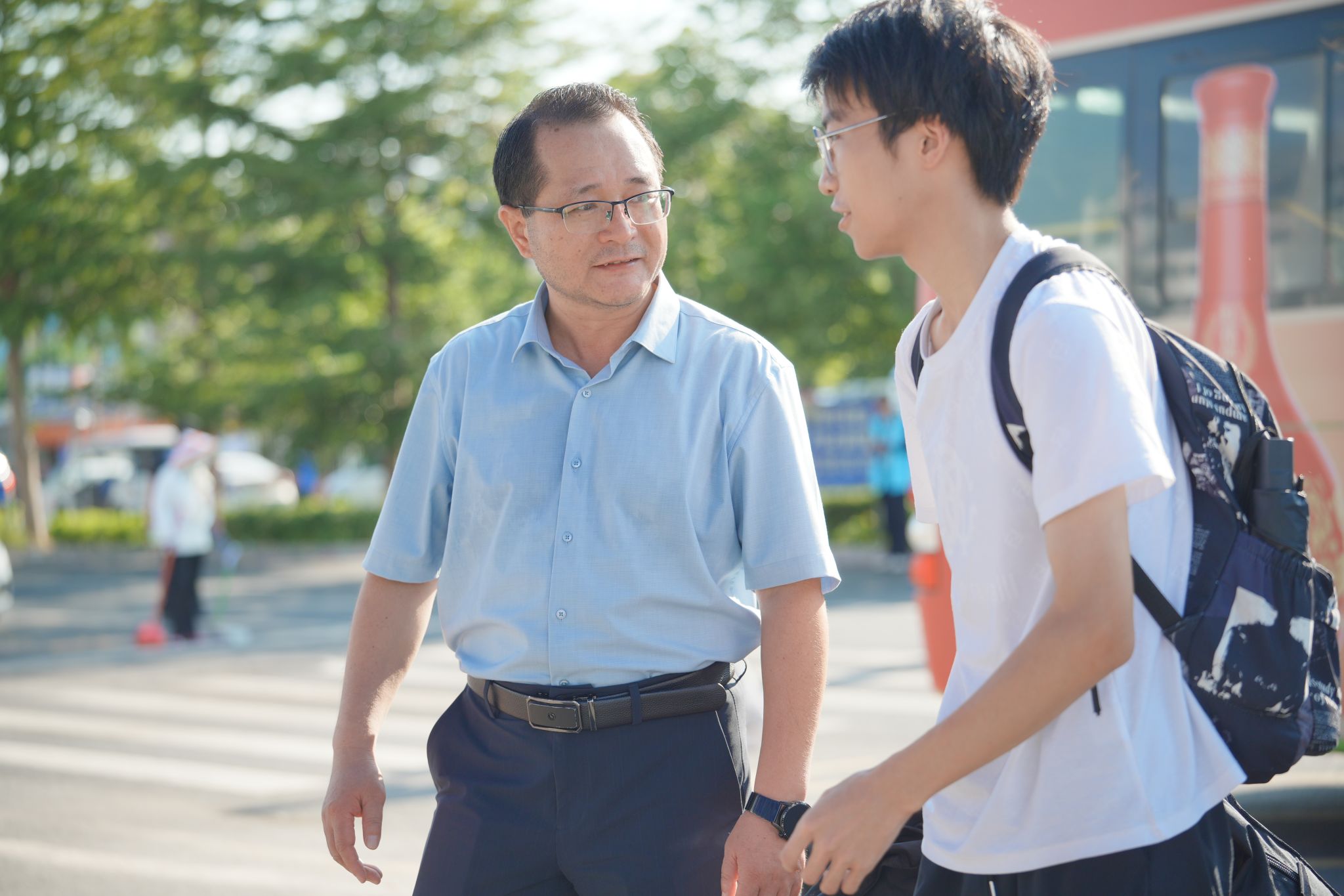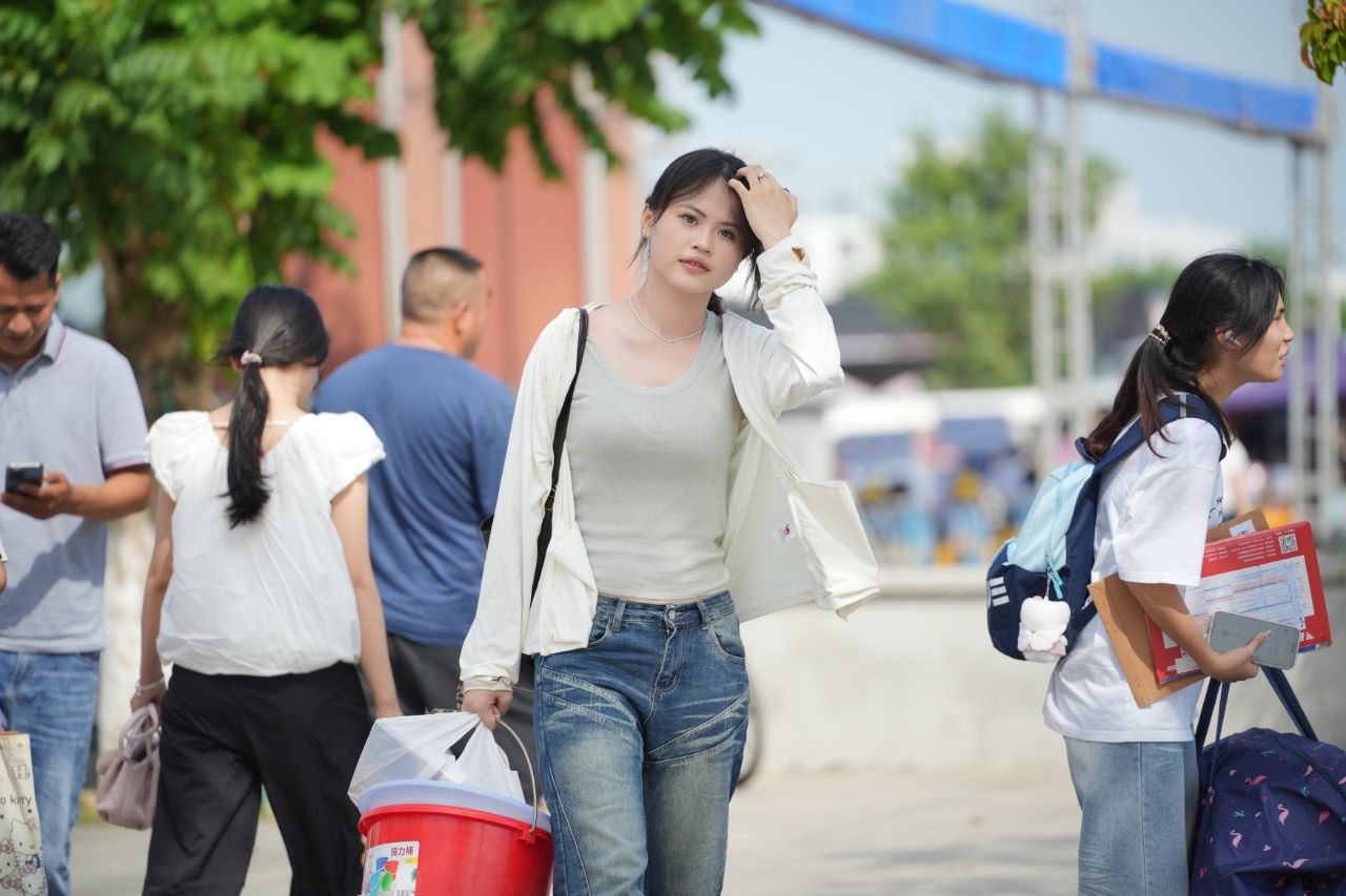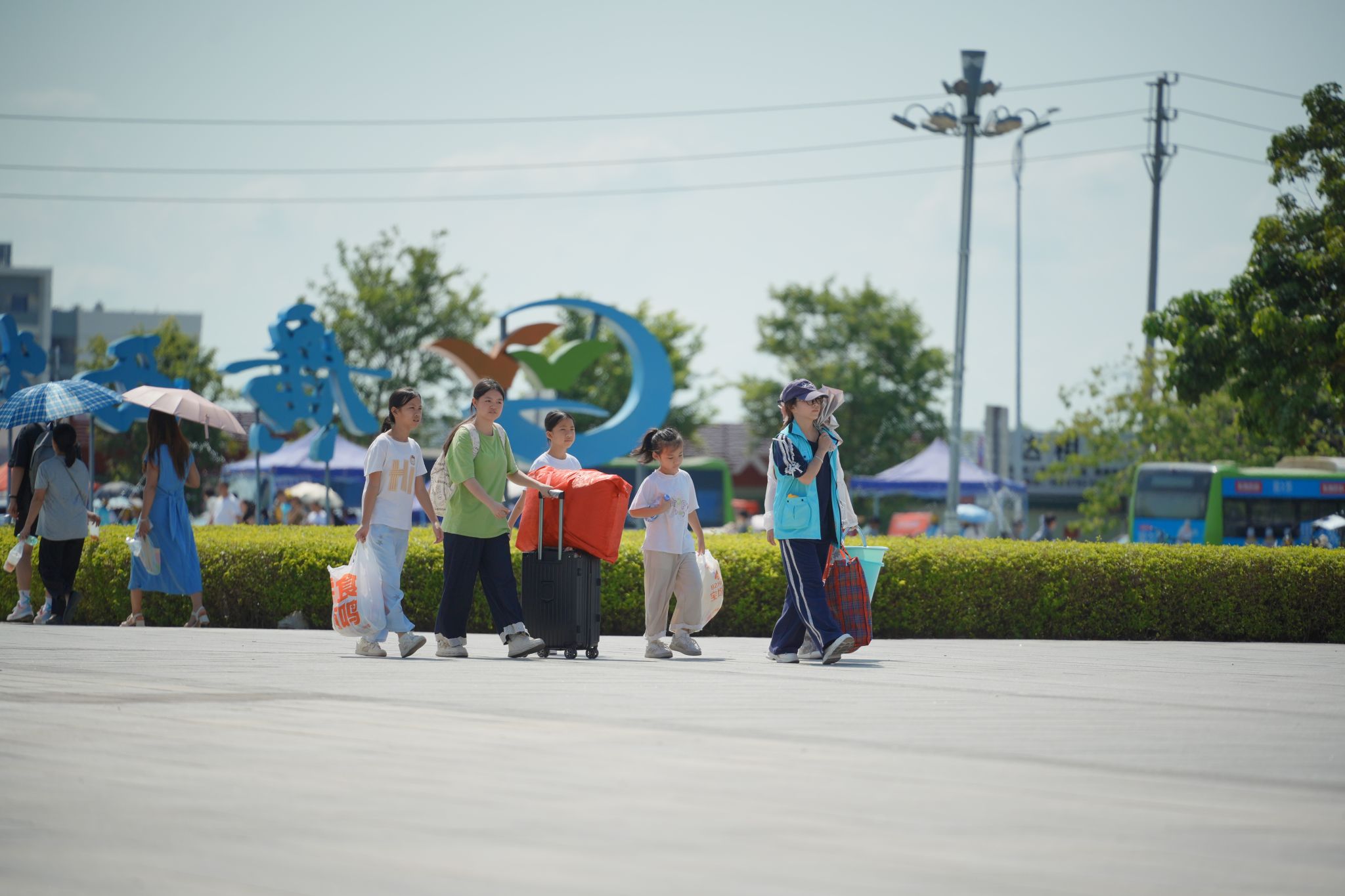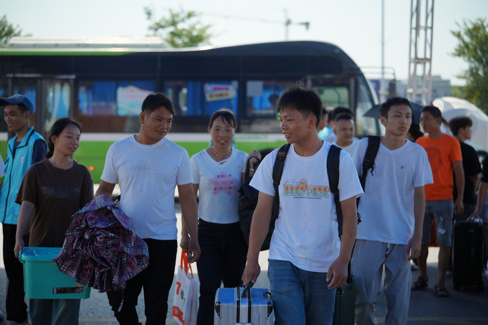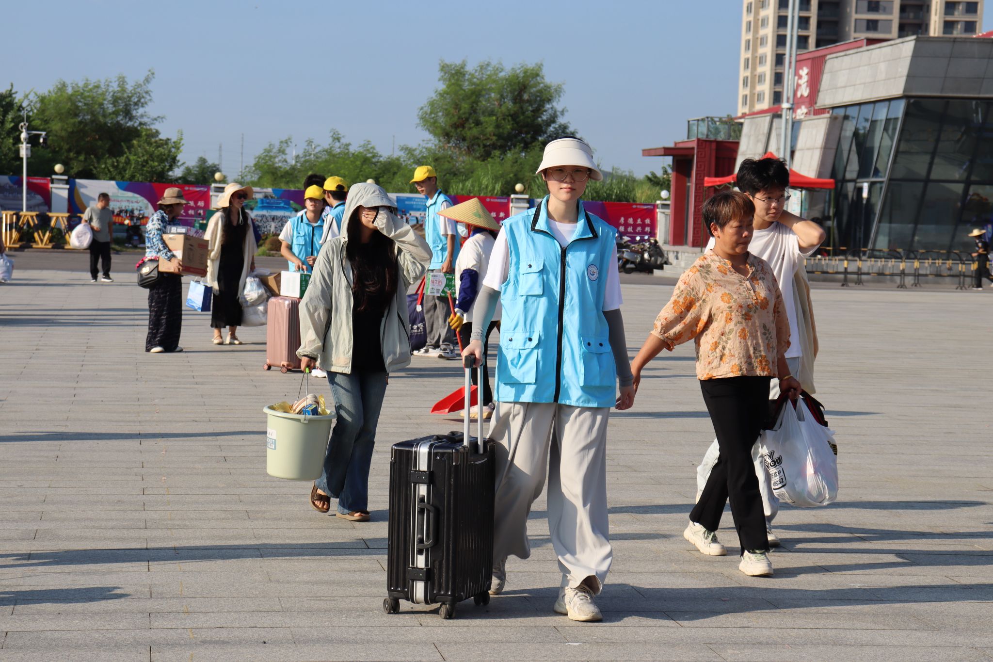 校园里随处可见扛着行李的家长