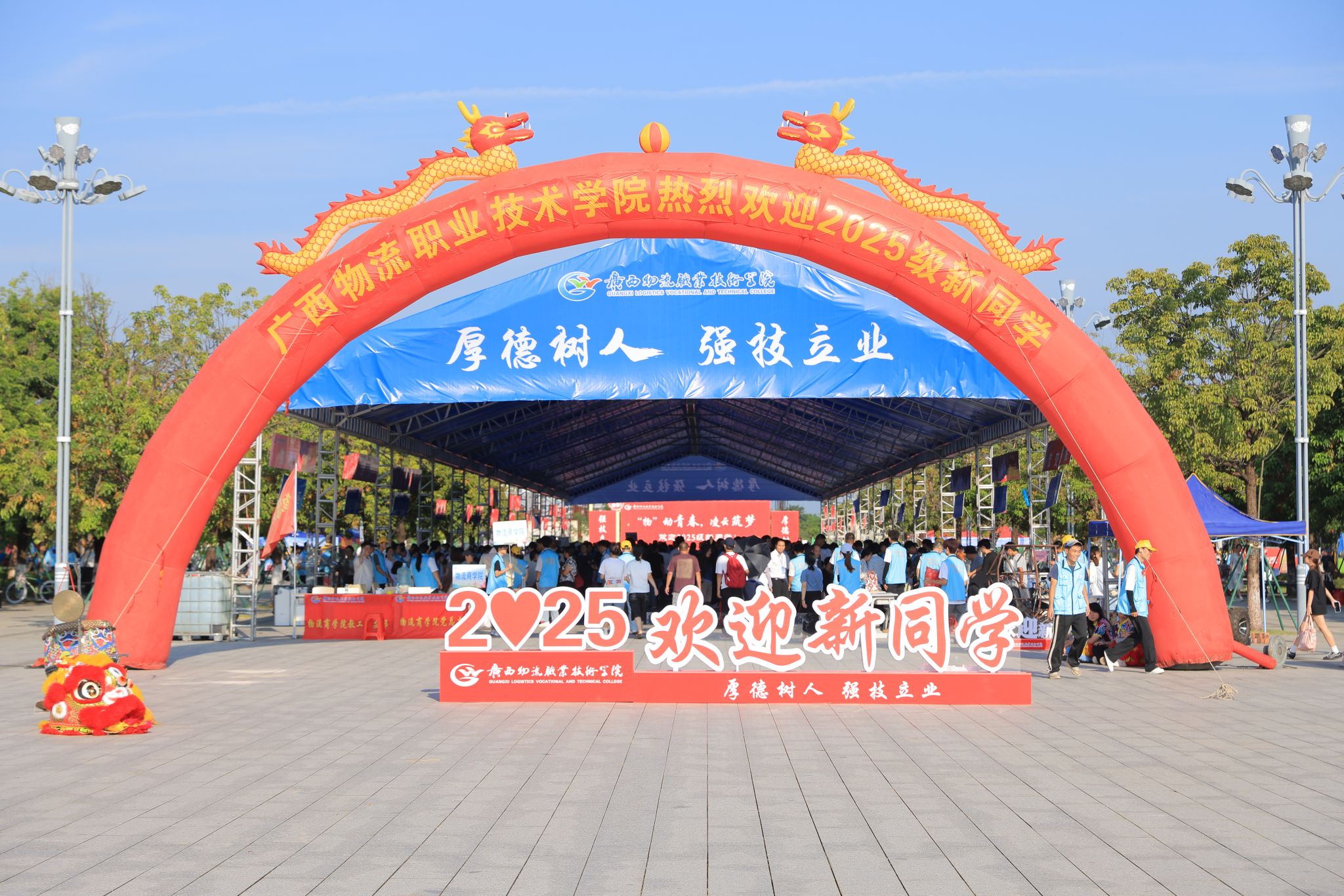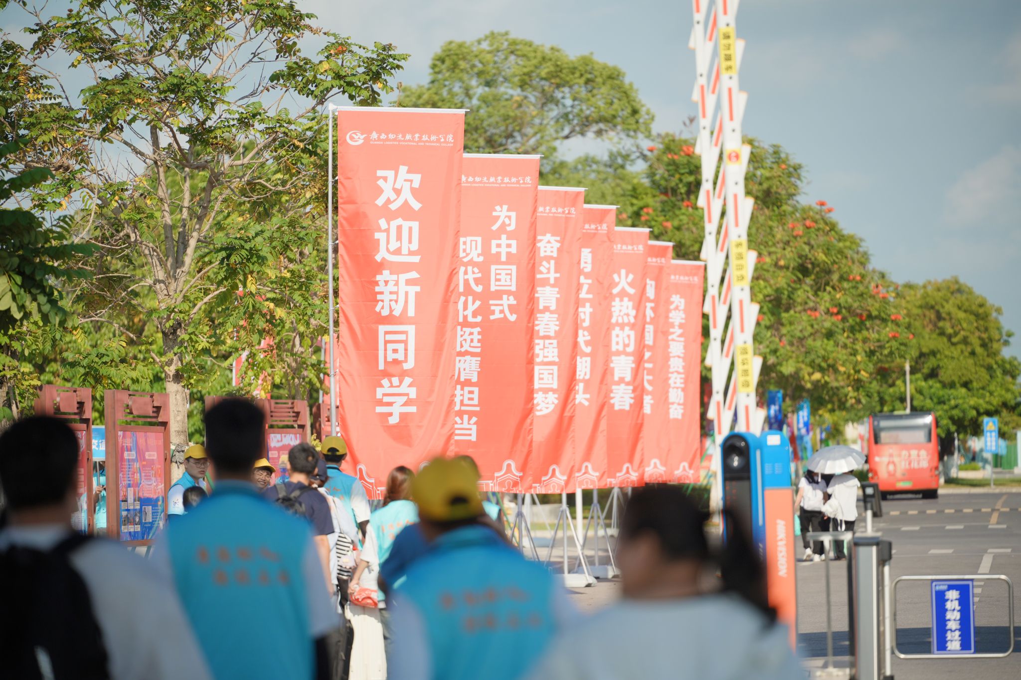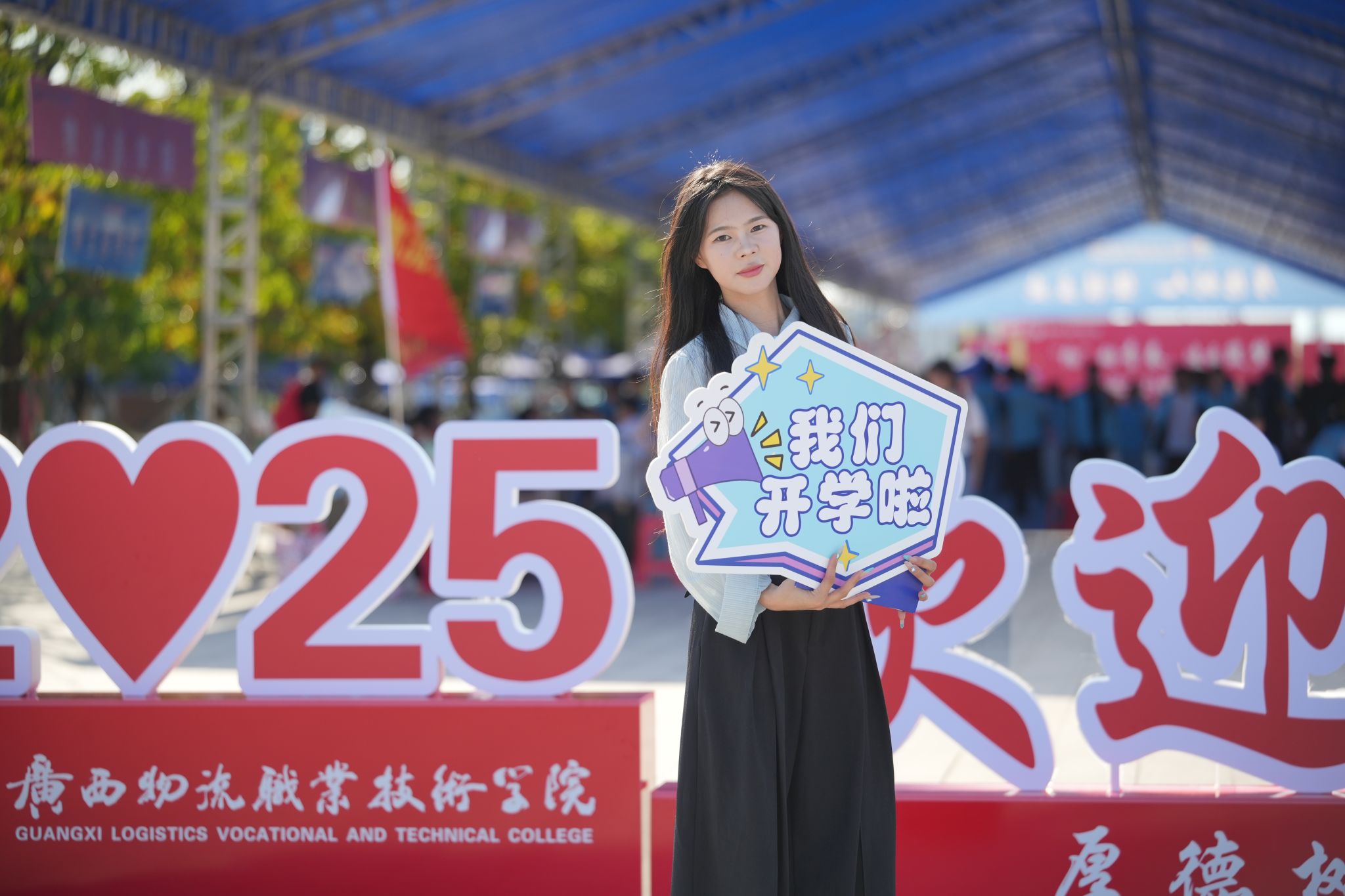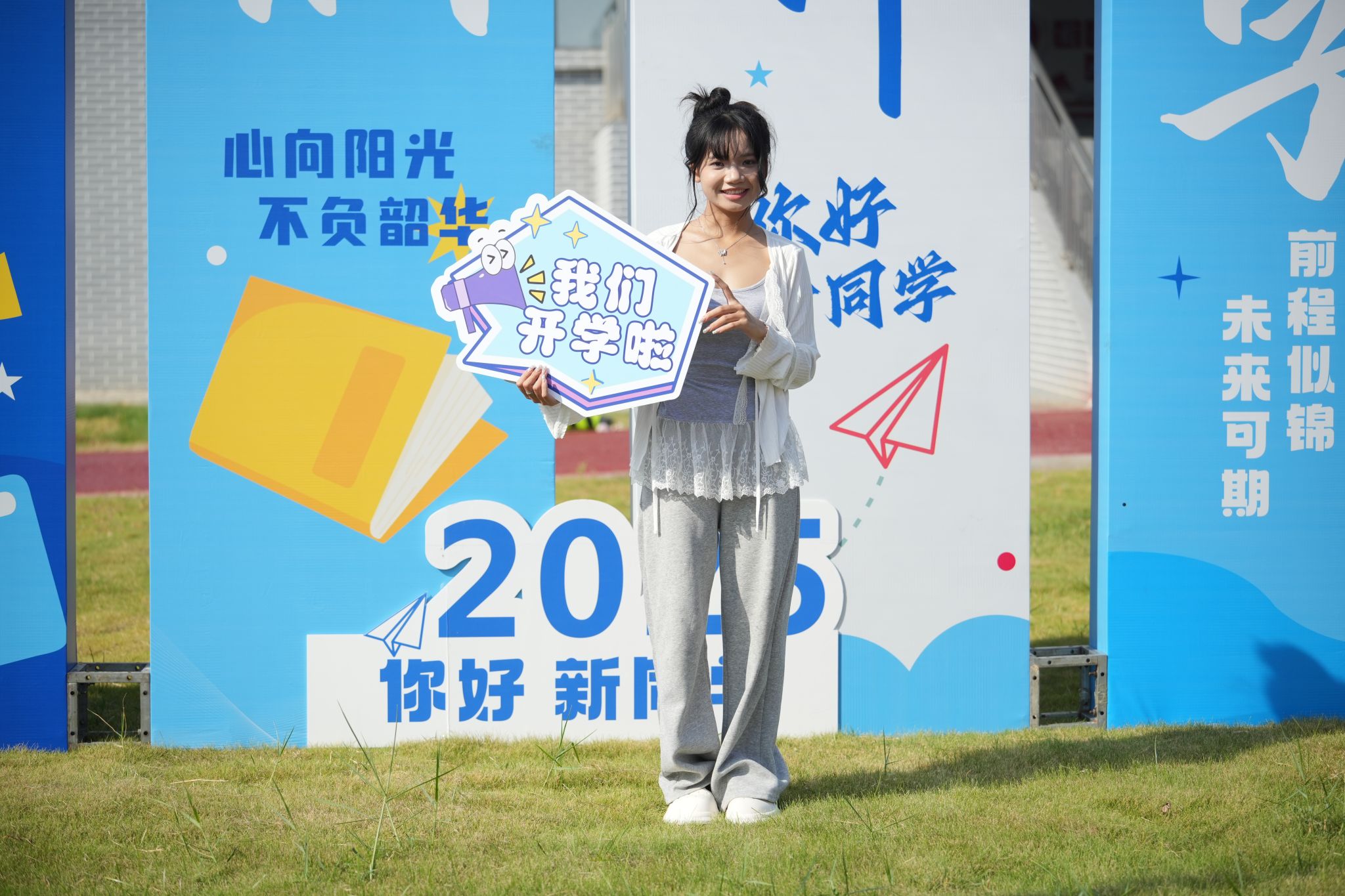 “欢迎新同学”的横幅与打卡点