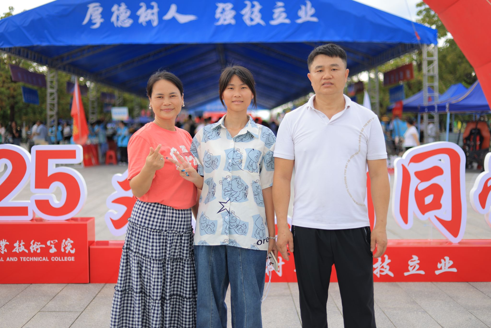 新生们纷纷在主题背景前