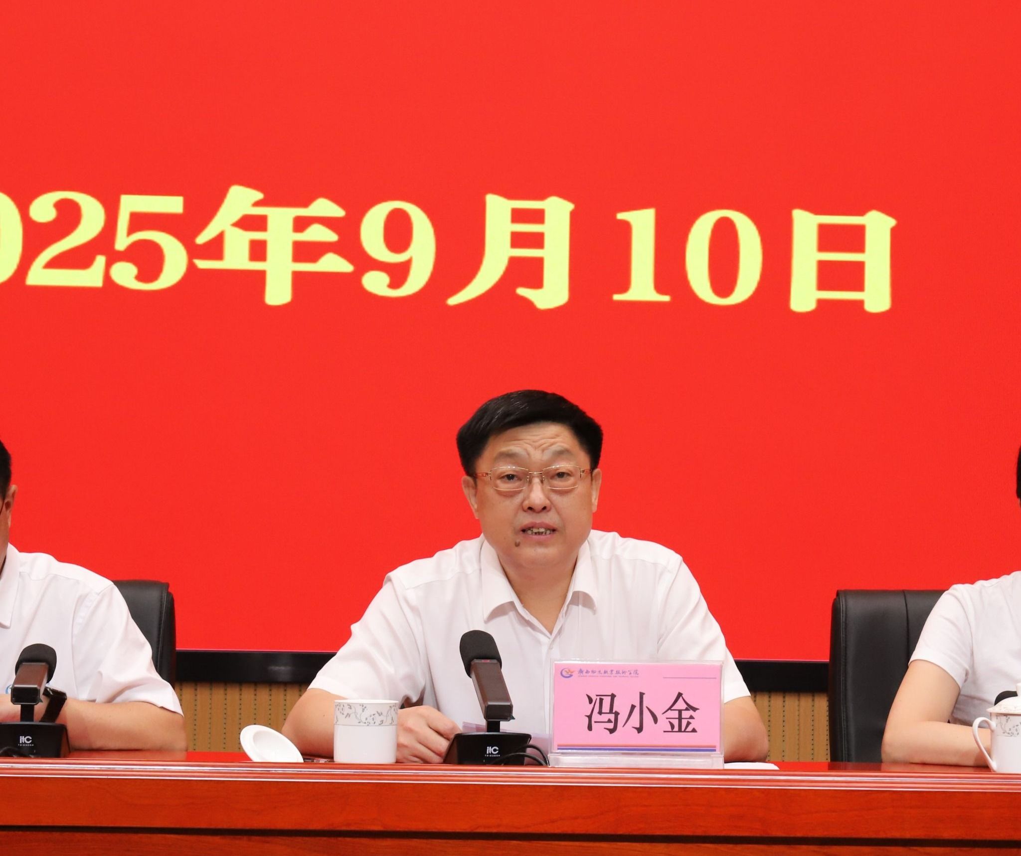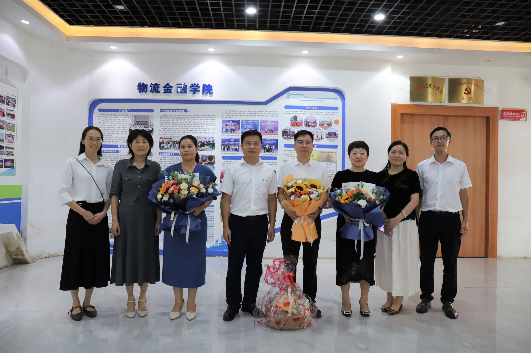 广西现代物流集团党委副书记、副董事长、总经理冯小金出席大会并讲话,党委委员、副总经理罗圆,党委组织部(人力资源部)部长陆星出席大会。学校党委书记漆辉主持大会,党委副书记、校长朱海强宣读表彰决定。
