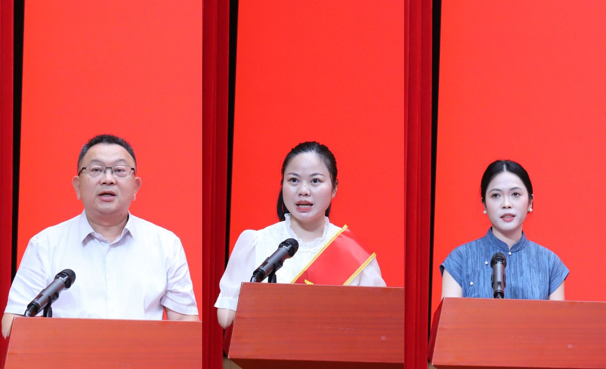 智慧交通学院院长莫军、物流工程学院教师郭嘉露、马克思主义学院新入职教师覃思惠作为教师代表上台分享。