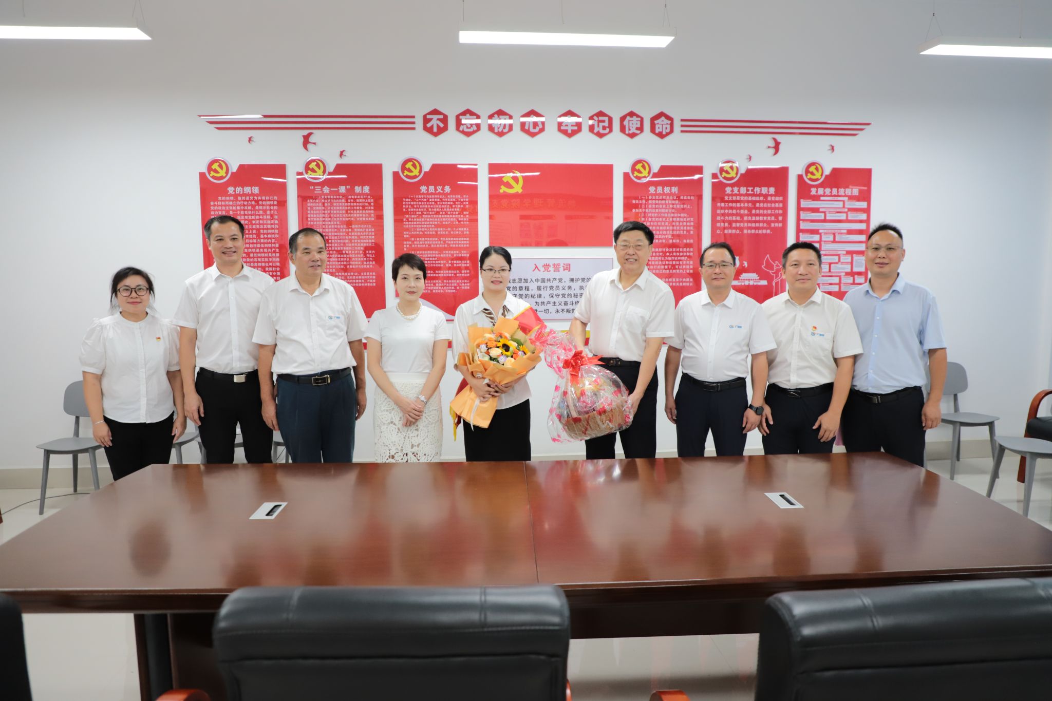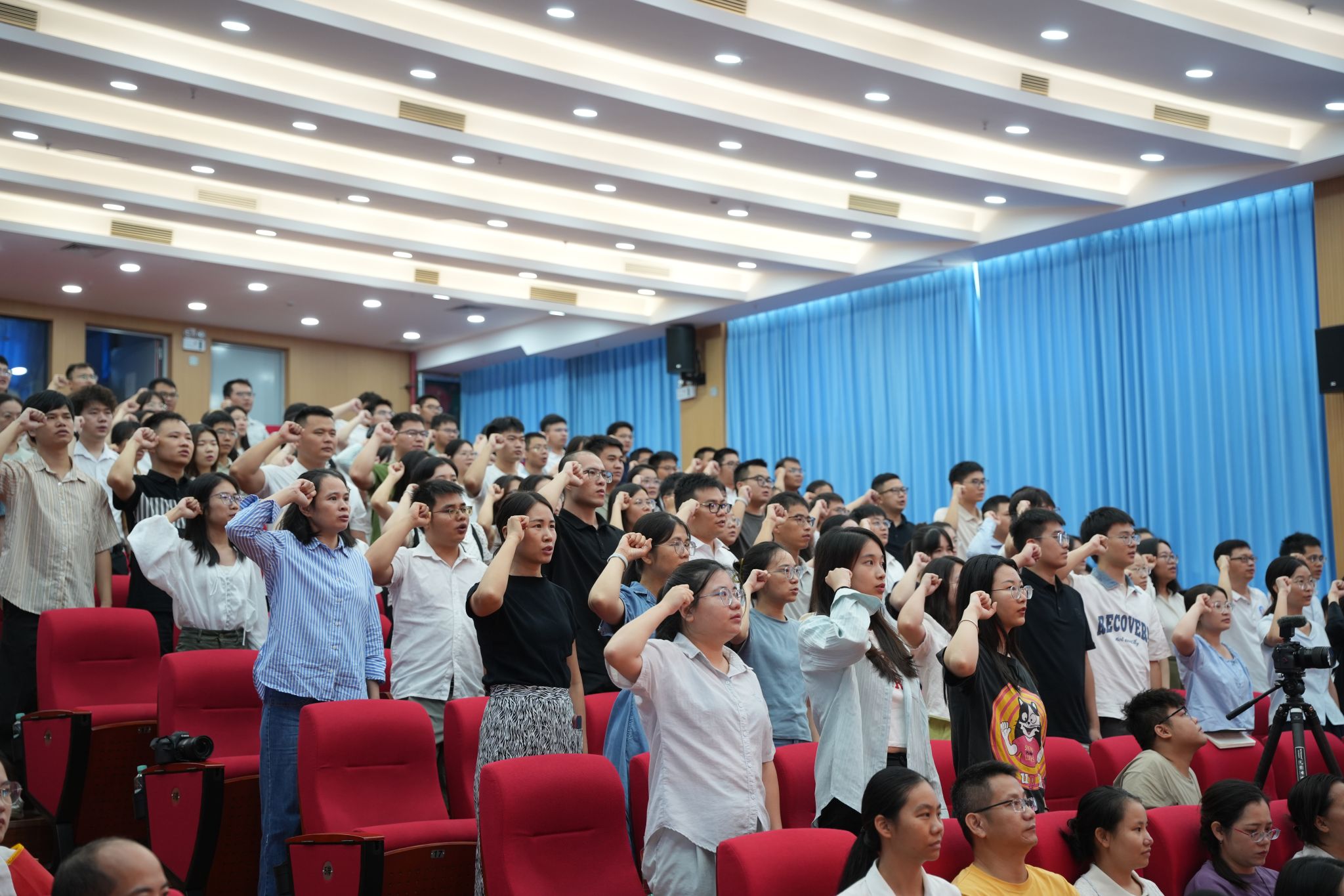 学校领导班子成员杨一笔、覃丽燕、陈继文、陈赋光、梁杰,全体中层干部、新入职教师及师生代表参加大会。