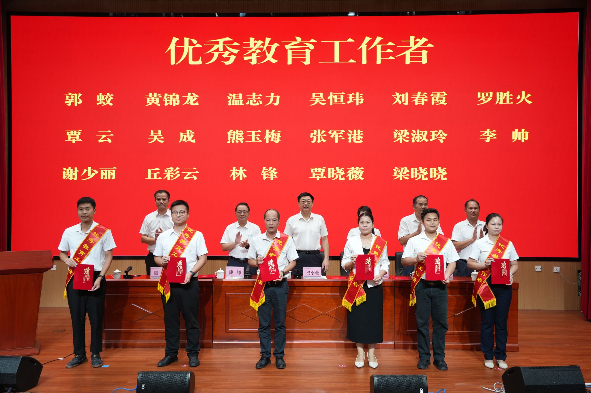 ▲优秀教育工作者代表上台受奖