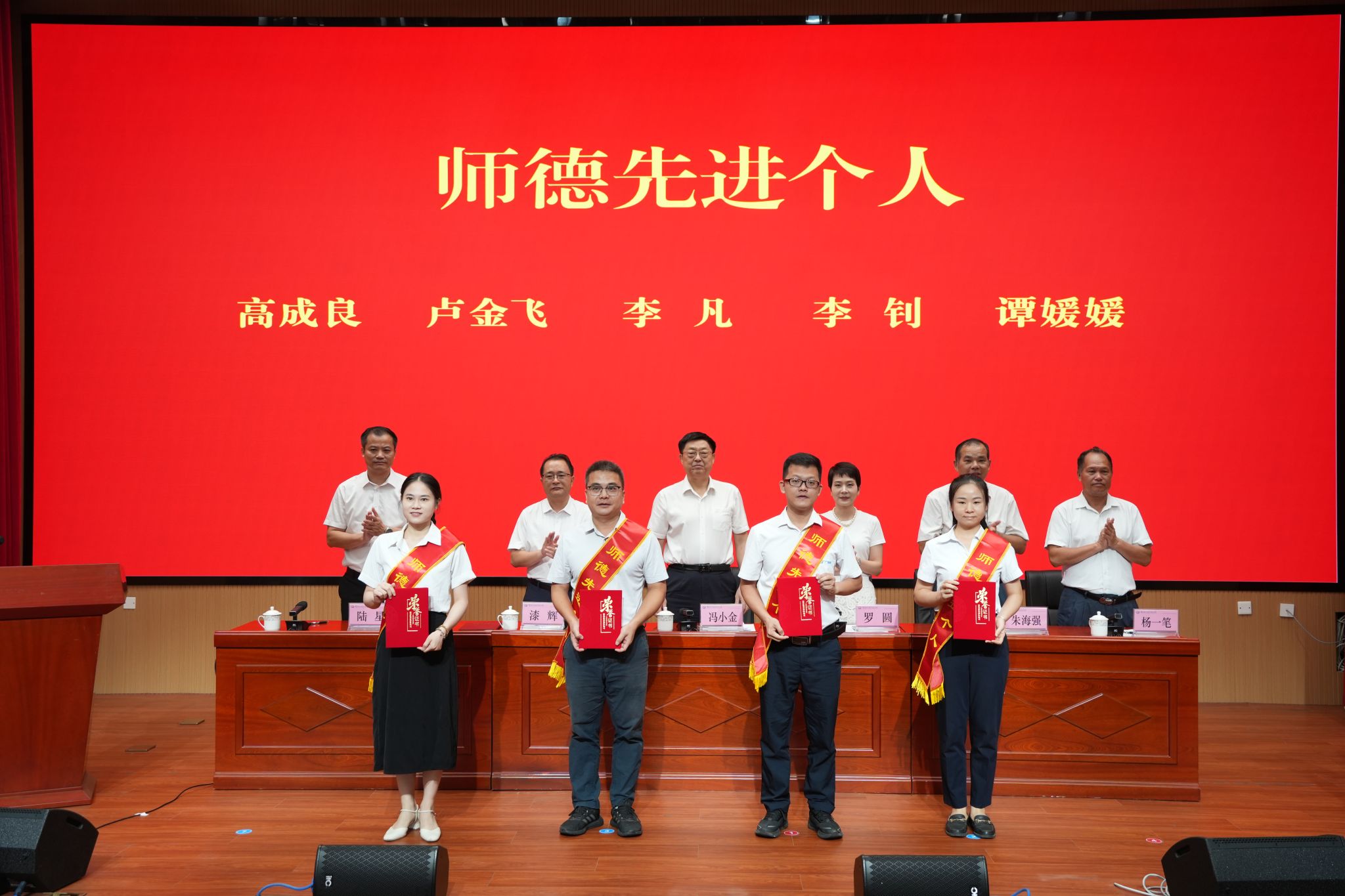 ▲师德先进个人代表上台受奖