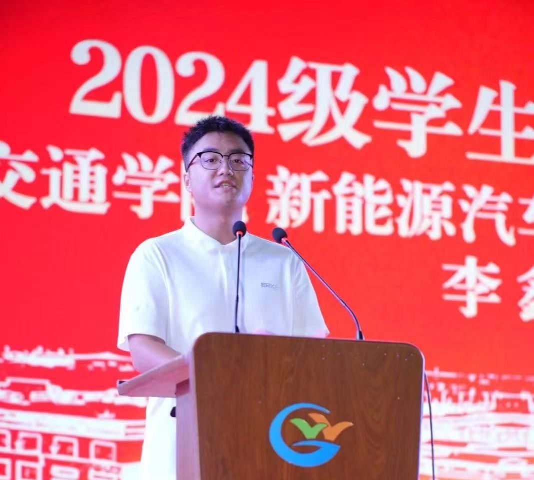 第十二届“挑战杯”广西大学生课外学术科技作品竞赛三等奖获得者、大学生创新创业大赛校赛铜奖获得者、智慧交通学院新能源汽车检测与维修技术专业李鑫作为2024级学生代表发言。