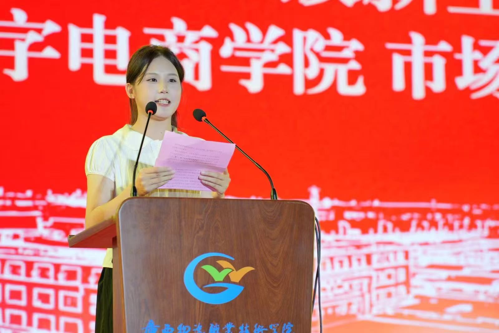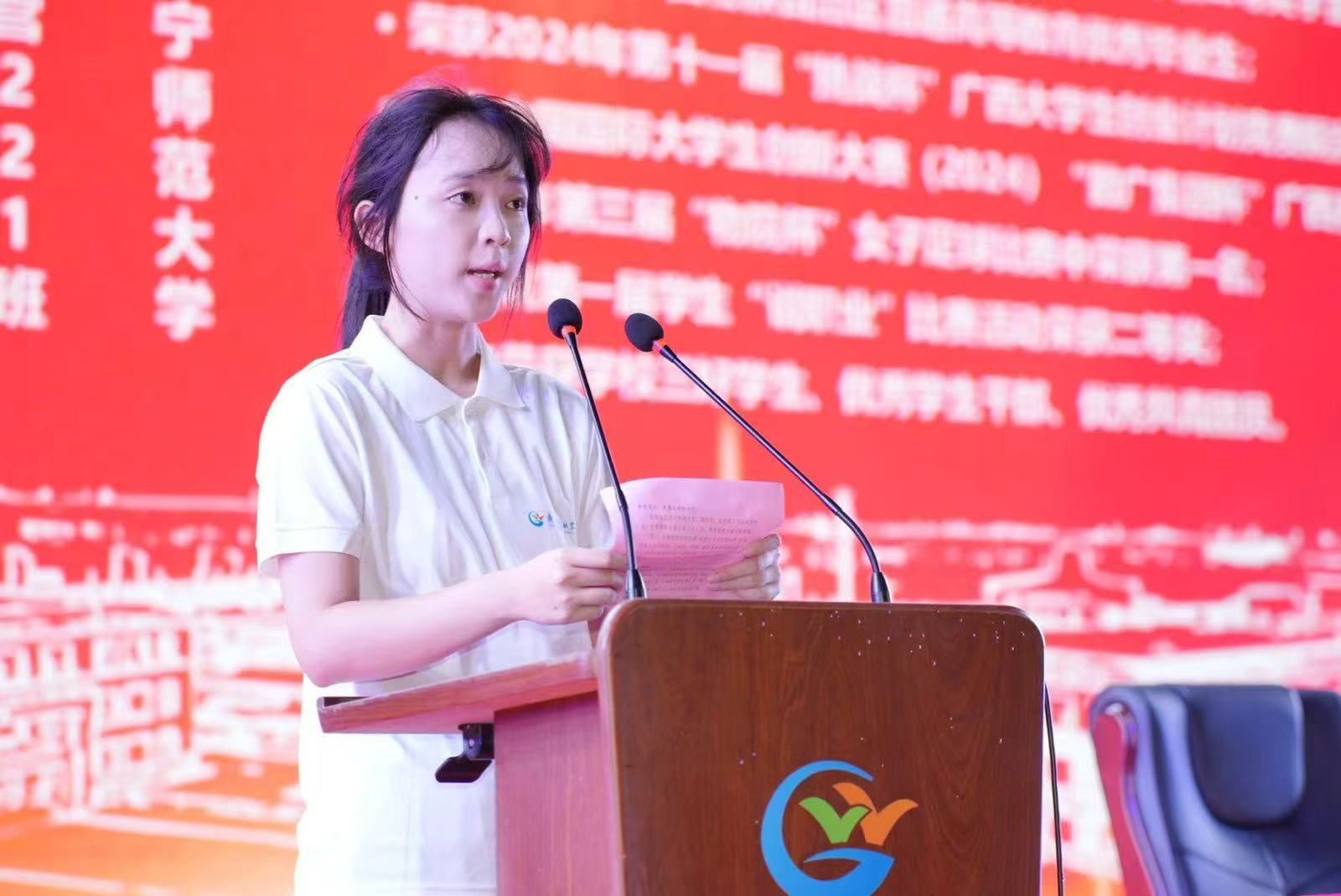 国家奖学金、自治区人民政府奖学金获得者、广西高校优秀毕业生获得者、南宁师范大学学生、供应链运营专业2025届毕业生陈贻可作为校友代表发言。