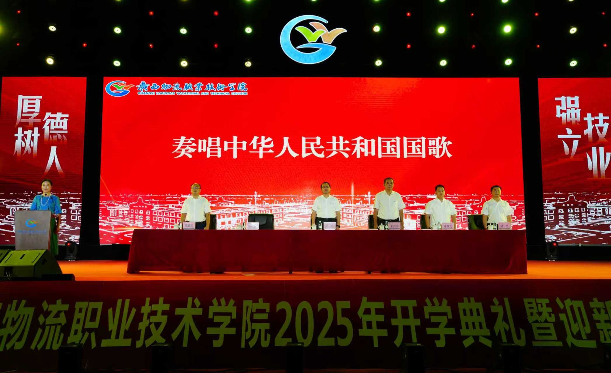 学校党委书记漆辉,党委副书记、校长朱海强,副校长陈继文、陈赋光、梁杰出席活动。开学典礼由党委委员、纪委书记覃丽燕主持。典礼在庄严的国歌声中拉开帷幕。