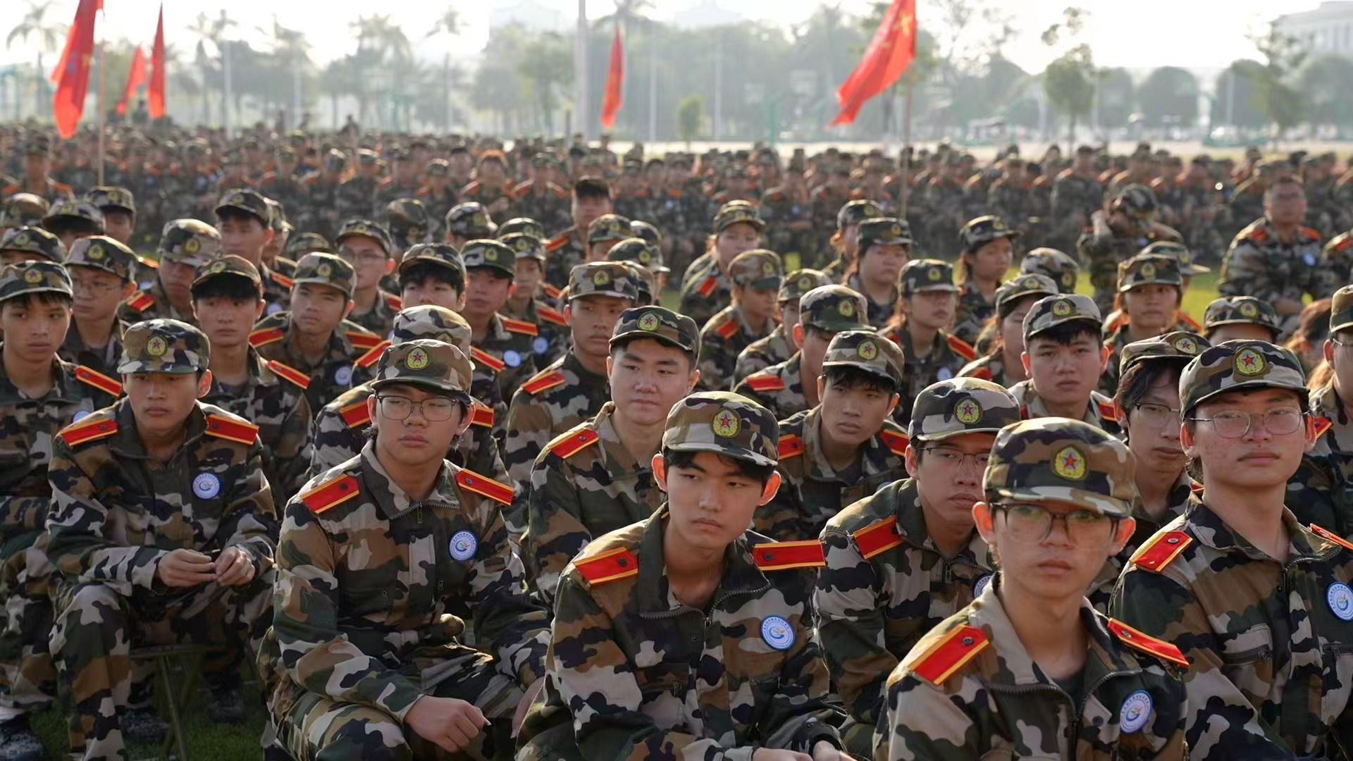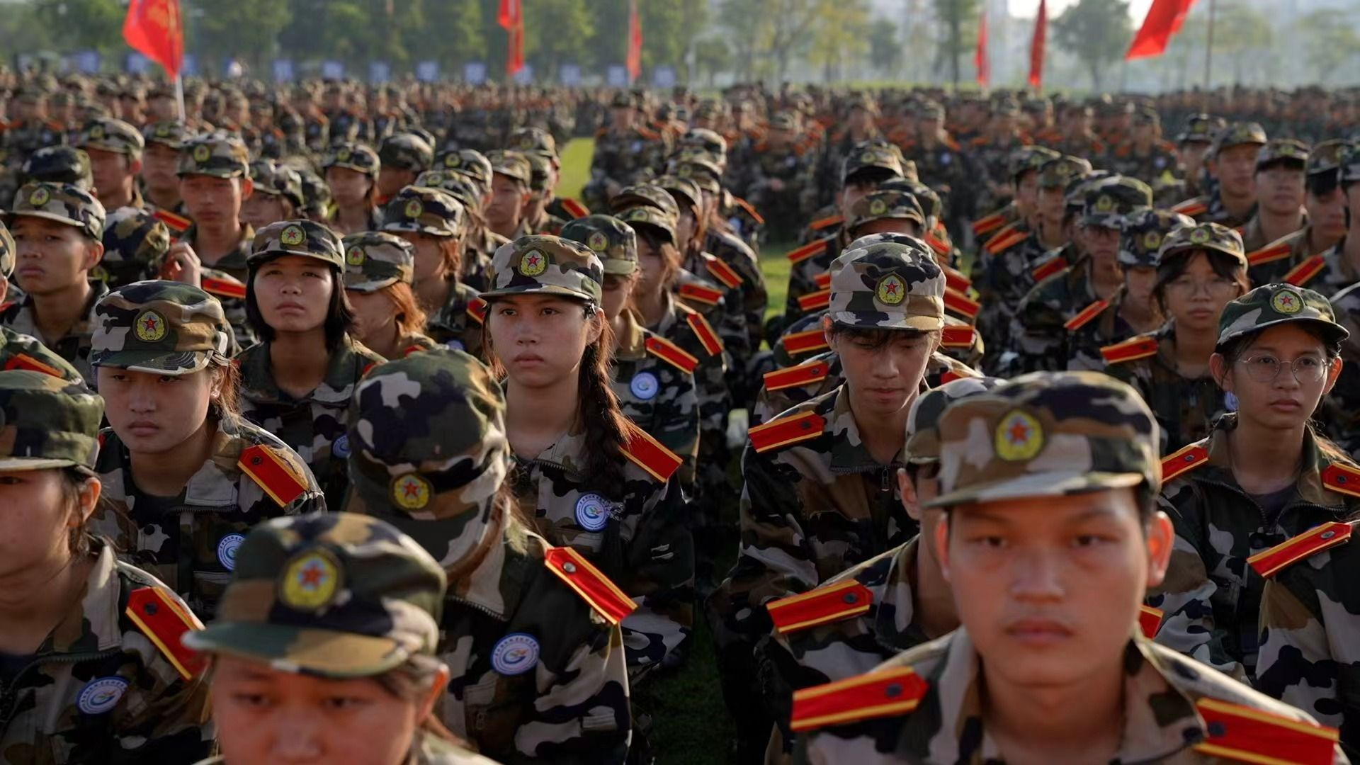 莘莘学子身着整齐迷彩