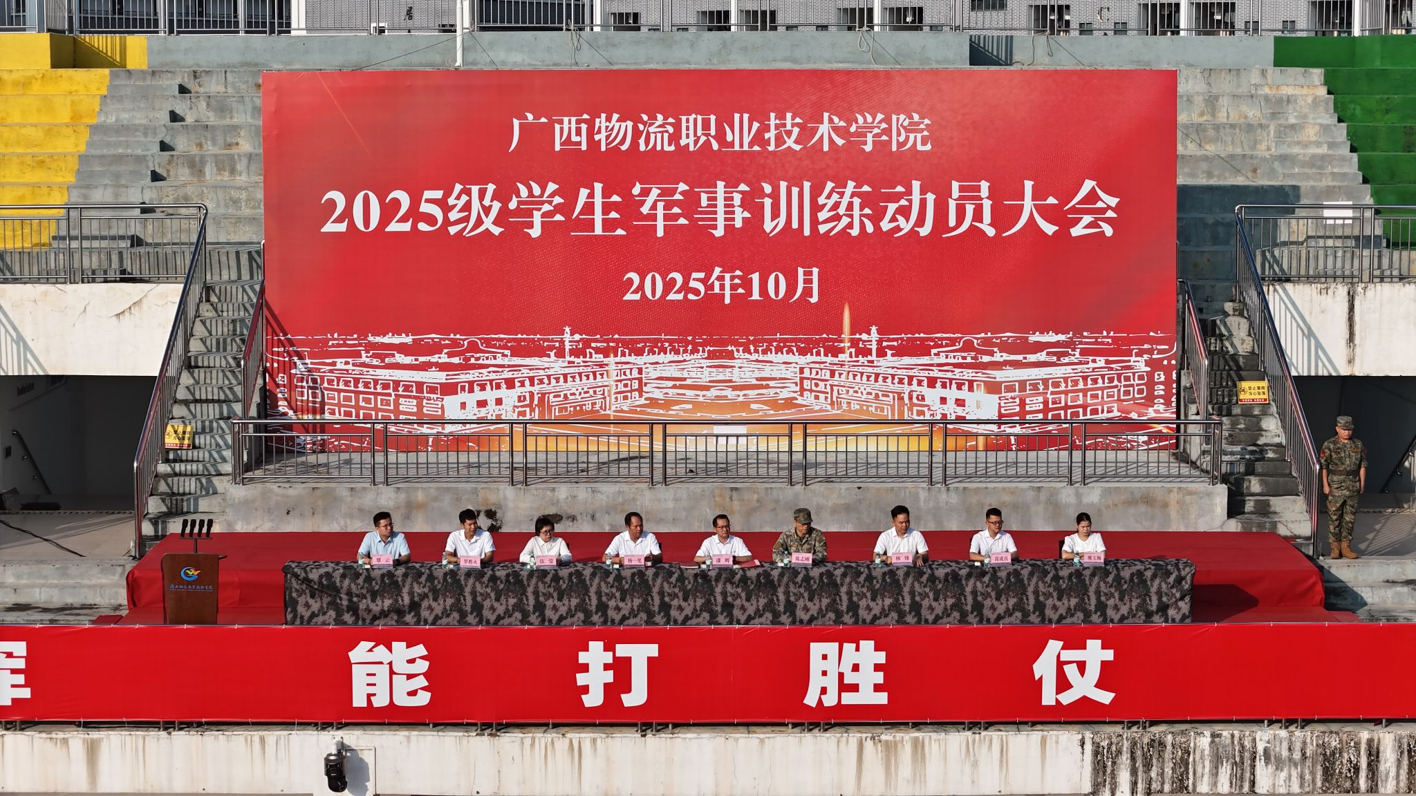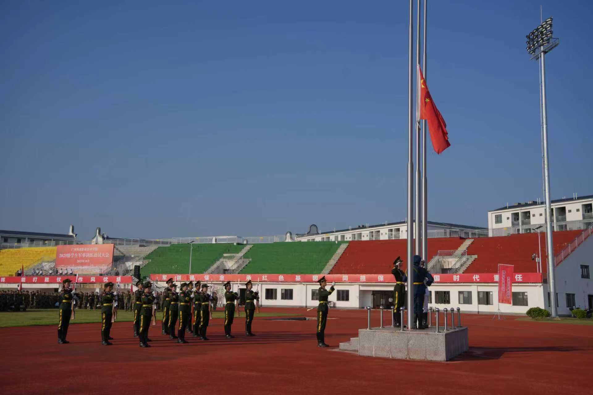 学校党委书记漆辉出席大会作动员讲话并向2025级学生军训团授旗。党委副书记、工会主席杨一笔主持大会,贵港军区战备建设处领导出席大会。学校人民武装部长、各二级学院党总支书记、全体承训教官、老师以及2025级全体同学们参加大会。