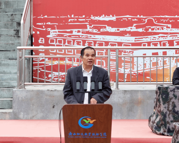 学校党委书记漆辉在大会上讲话并向贵港市军分区赠送锦旗,党委副书记、校长朱海强宣读表彰决定,贵港军分区代表出席大会,党委副书记、工会主席杨一笔主持大会,领导班子成员覃丽燕、陈继文、陈赋光、梁杰参加大会。