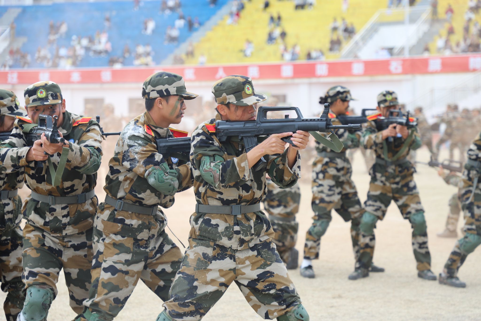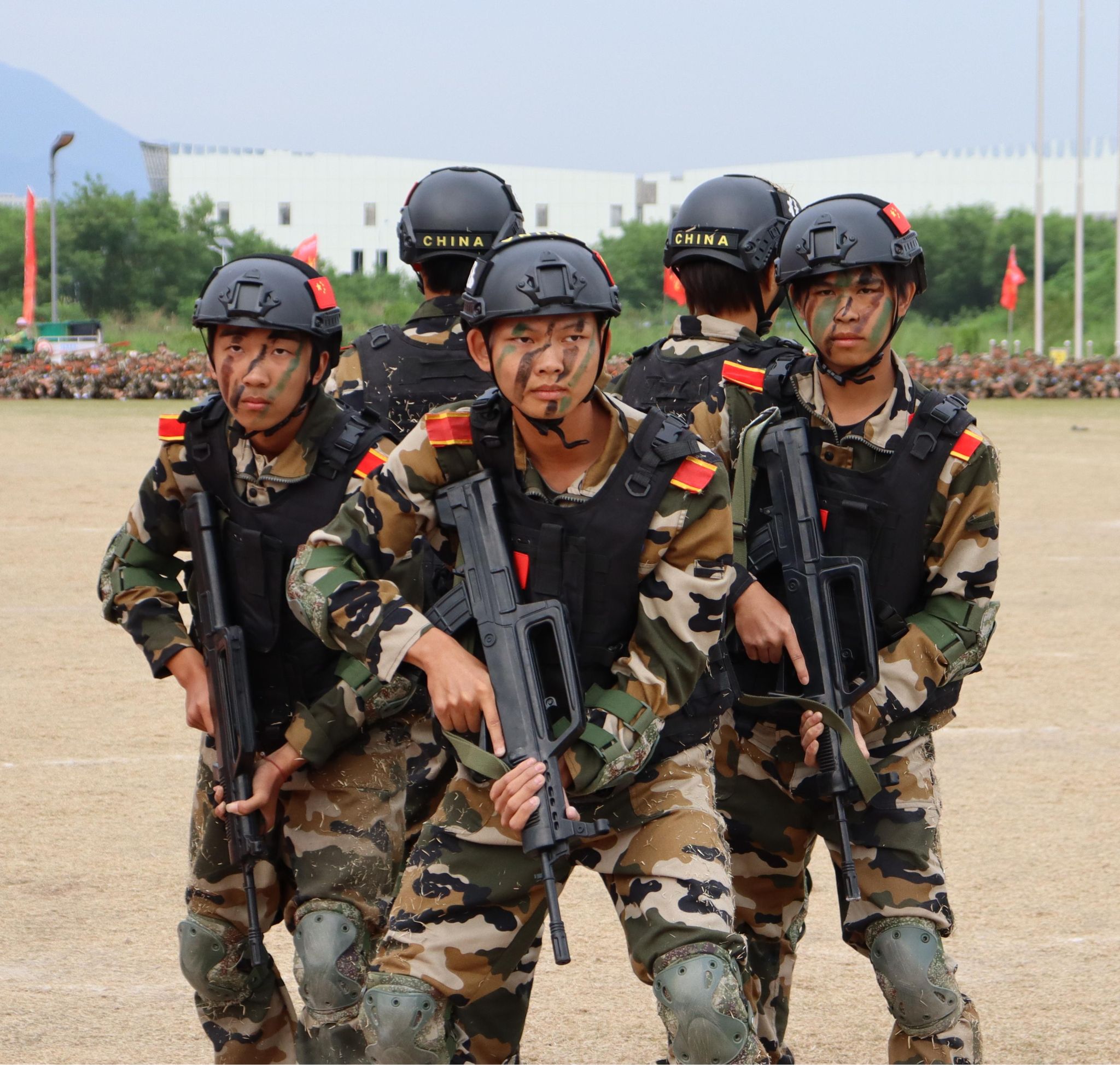 “向右看——齐!”随着指令落下,6个迷彩方阵迈着铿锵步伐依次通过主席台。
