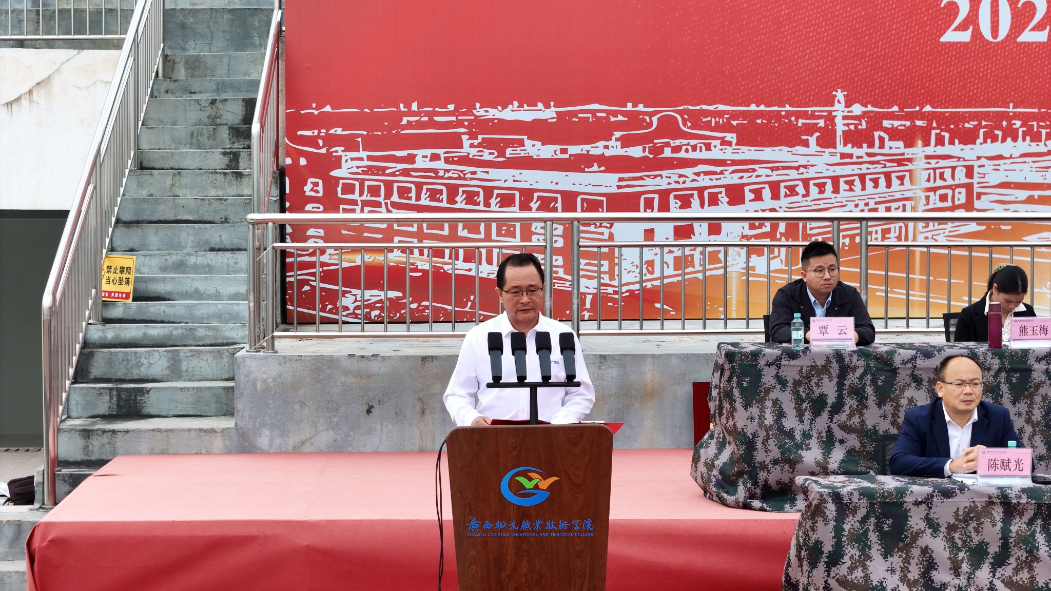 漆辉充分肯定了2025级新生军事技能训练成果,并向贵港军分区的关心和支持、全体教官的辛苦付出表示衷心感谢,向军训全体工作人员、学生工作队伍表示亲切的慰问,向获奖的单位及个人表示热烈的祝贺。他寄语新生:一要把“守纪律”刻进日常,让令行禁止的作风成为做人做事的“定盘星”。二要把“敢吃苦”扛在肩上,让百折不挠的意志成为攻克学业难关的“登山杖”。三要把“懂团结”放在心上,让集体主义精神成为学习生活的“聚光镜”。四要把“爱家国”融进专业,让赤子之心与担当精神成为人生路上的“指南针”。