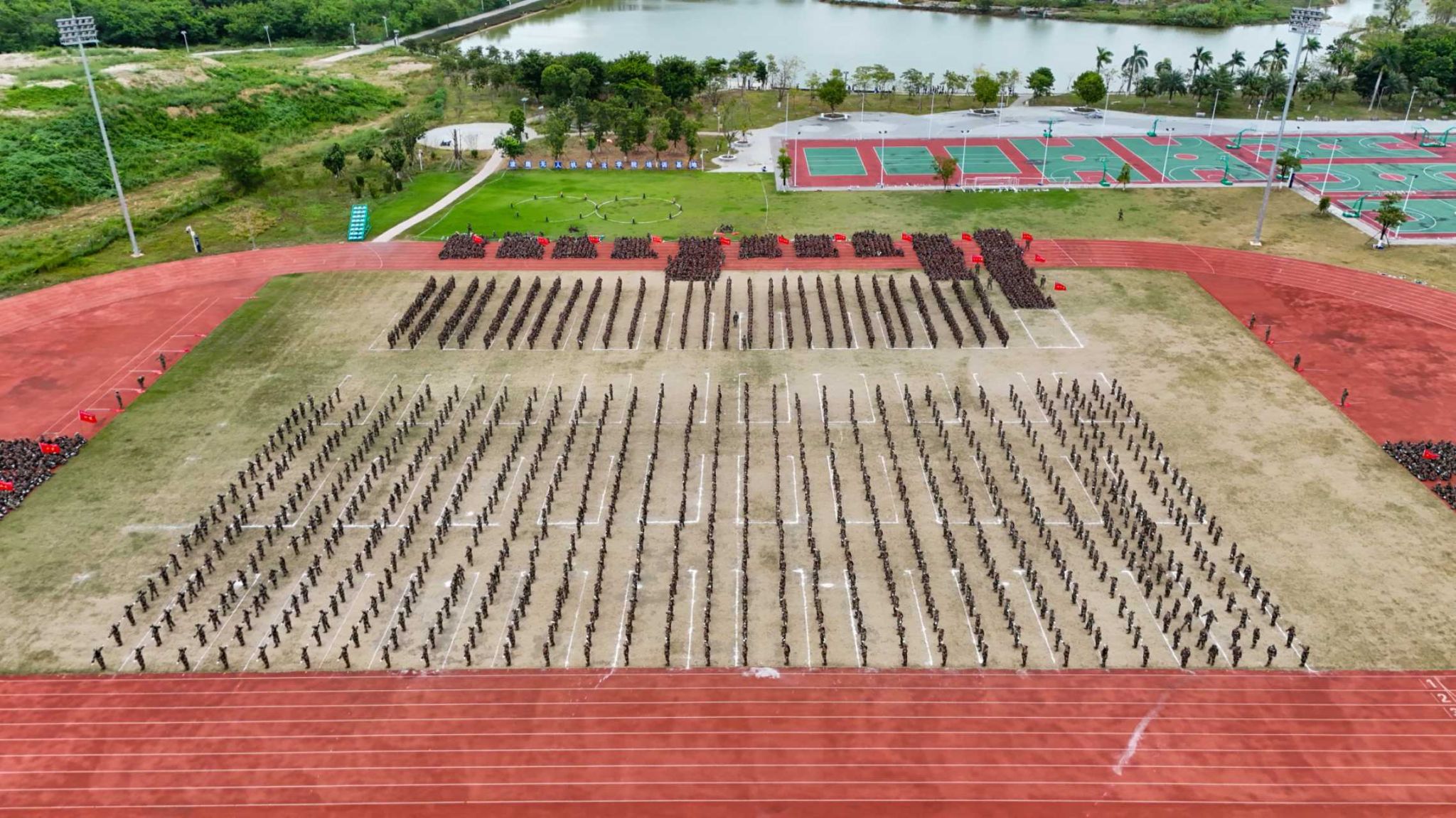 西行运动场旌旗飘扬