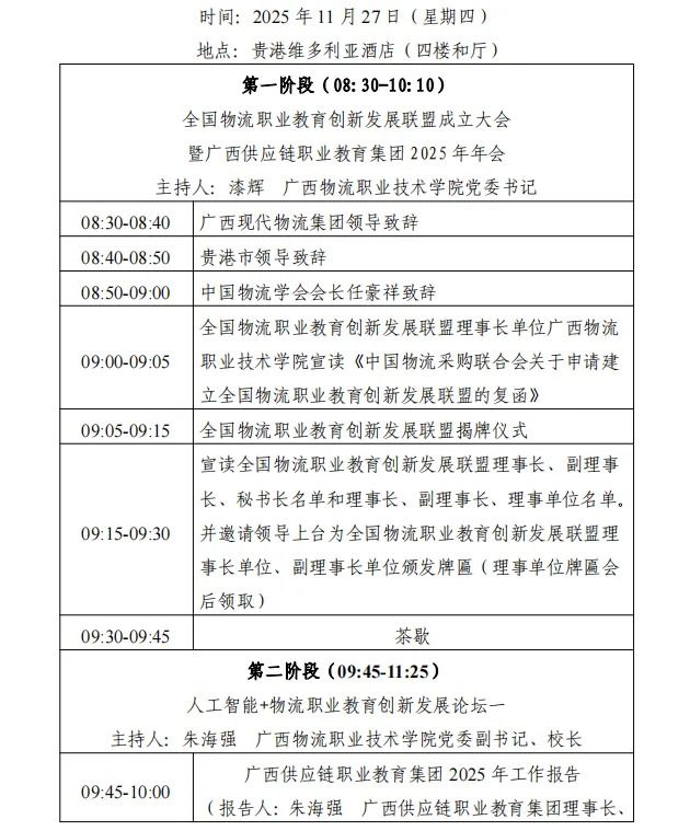 暨广西供应链职业教育集团2025年年会会议议程
