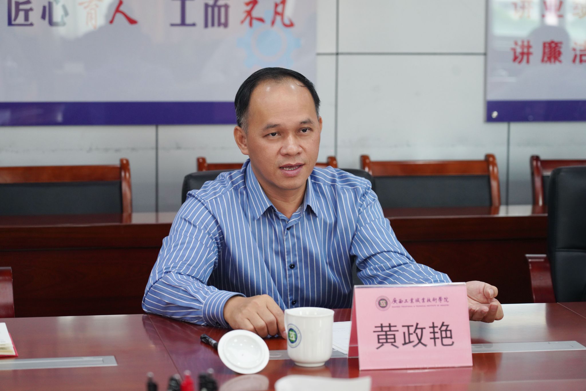 黄政艳对beat365官网交流团队的到访表示热烈欢迎,并简要介绍了广西工业职业技术学院的发展历程与办学现状。他详细阐述了学校的在校生规模、重点专业群建设成果、实训基地布局及校企合作成效,全面展示了其办学底蕴与发展优势。