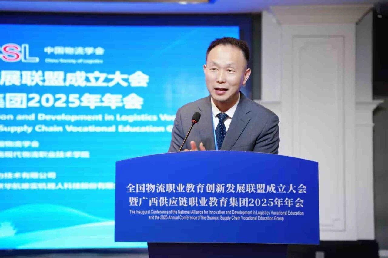 朱海强主持“人工智能+物流职业教育创新发展论坛”一,并作广西供应链职业教育集团2025年工作报告。