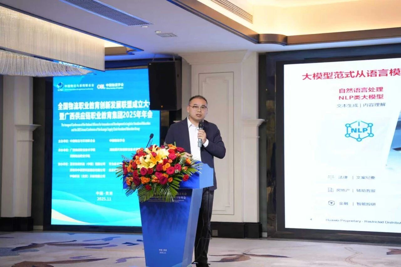 徐广垚以“智能无限,行者无疆——AI时代下数智化人才培养探索与实践”为核心,从人工智能发展趋势洞察、物流行业AI场景及案例分享、AI时代下数智化人才培养三方面展开分享。他指出AI正从弱人工智能向超人工智能演进,大模型广泛延伸至多领域,不断推动产业的智能化升级。物流行业借助AI赋能规划、仓储、运输等场景及视频智能分析等方案,可有效实现降本增效。面对人才需求缺口,华为依托产教融合实践中心、层次化认证体系、实训平台及适配多专业的课程体系,并结合DeepSeek技术的运用和政校企协同,助力培养适配产业发展的数智人才。