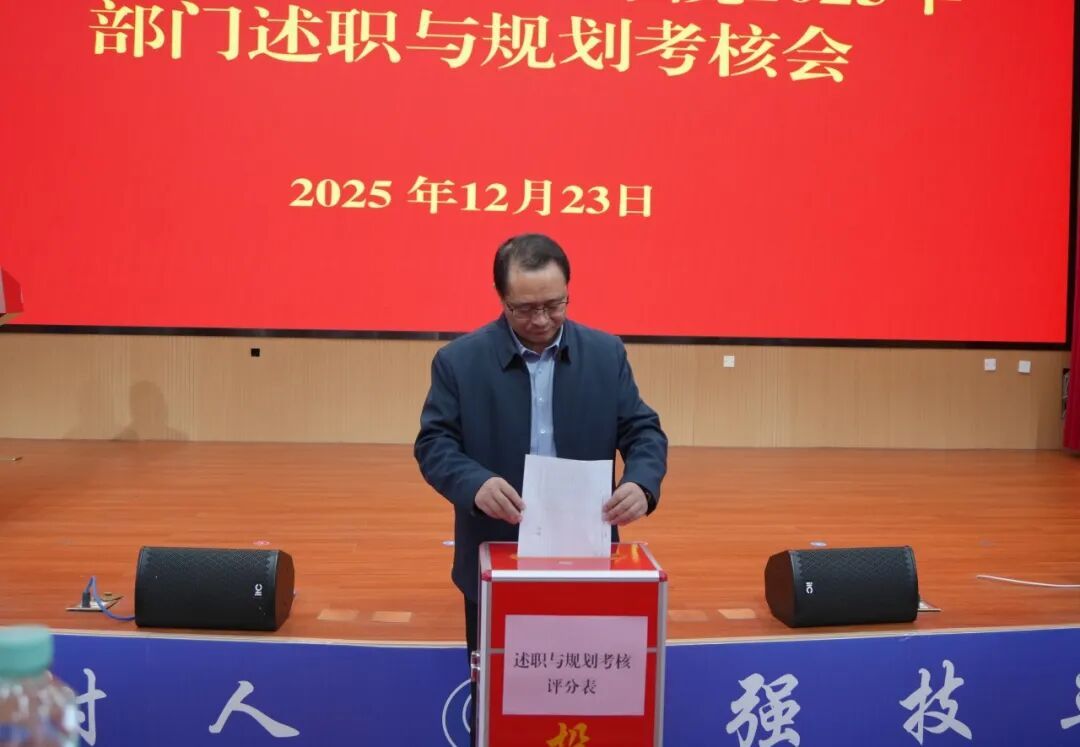 12月23日,学校召开2025年度部门述职与规划考核会议,全面总结2025年度工作成效,科学谋划2026年工作,进一步推动学校各项事业高质量发展。党委书记漆辉出席会议并参与测评。党委副书记、校长朱海强出席会议并作总结发言。党委副书记、工会主席杨一笔主持会议。在校领导班子成员覃丽燕、陈继文、陈赋光参加会议并参与测评。