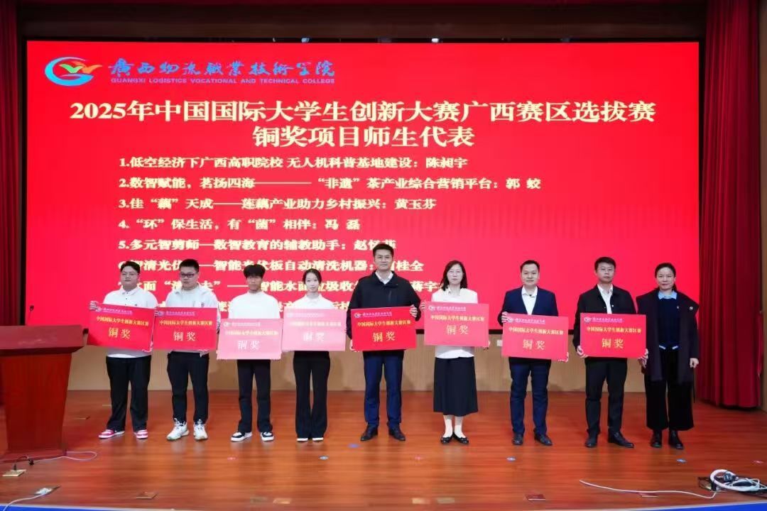 覃丽燕为获得2025年中国国际大学生创新大赛广西赛区铜奖项目师生代表颁奖